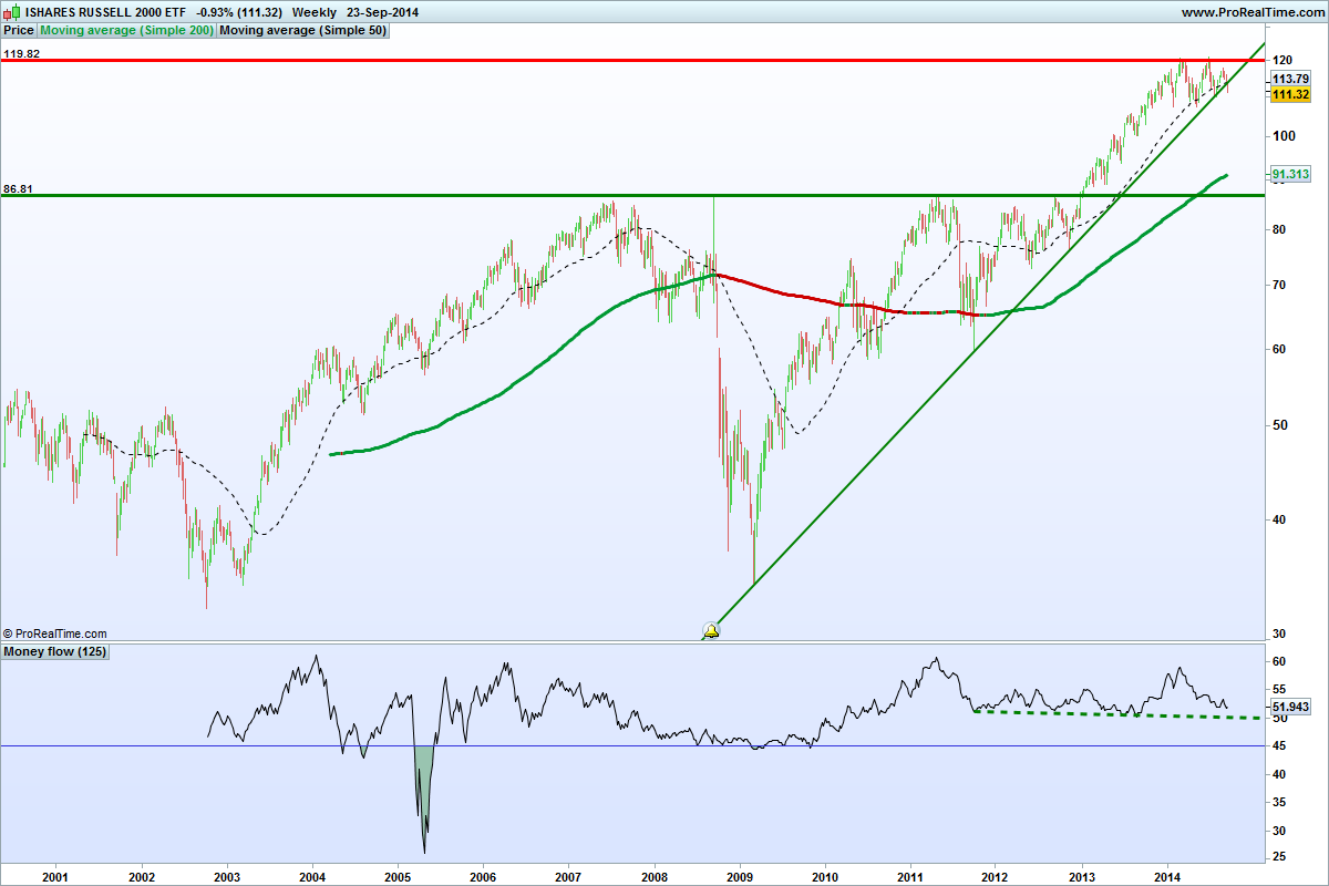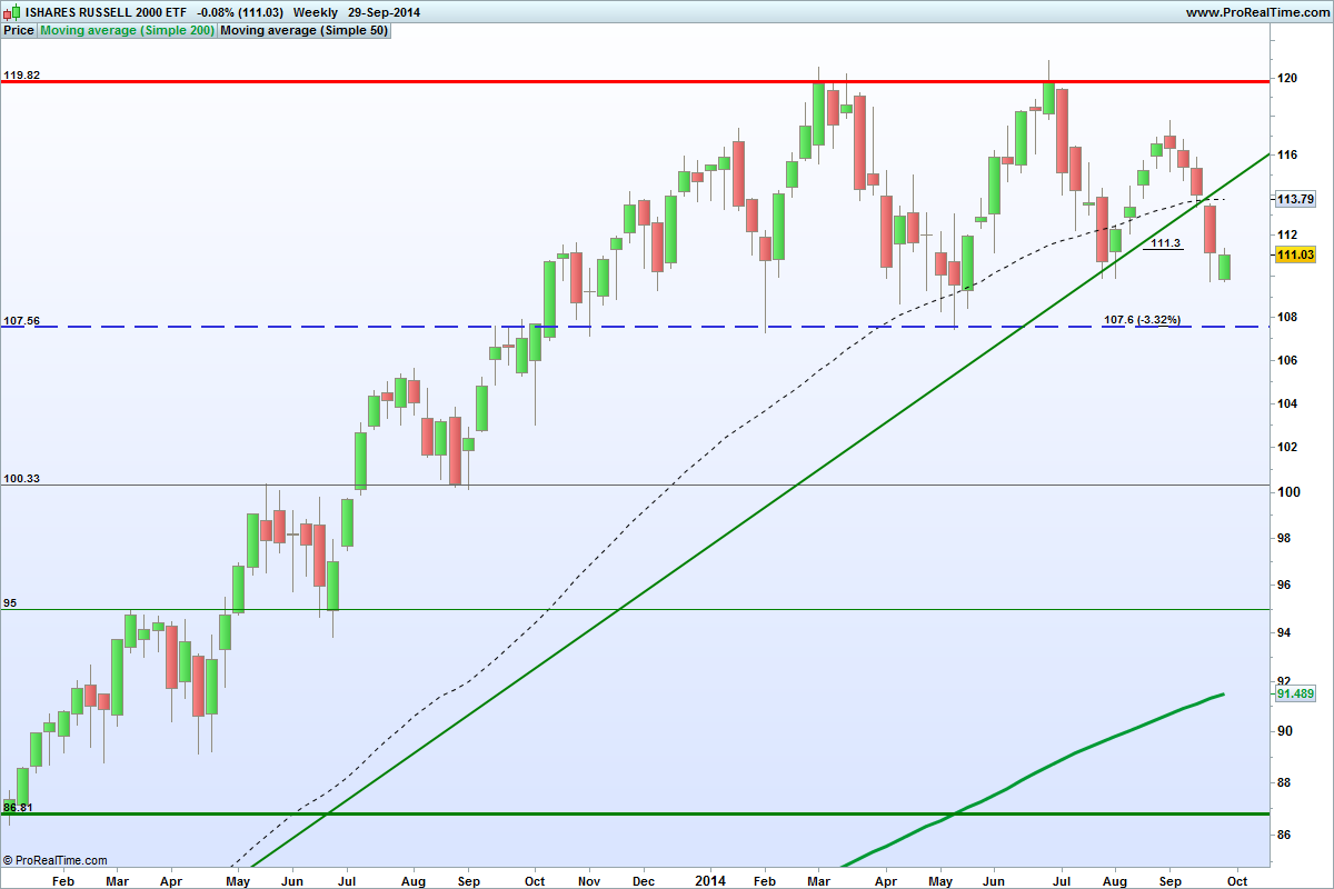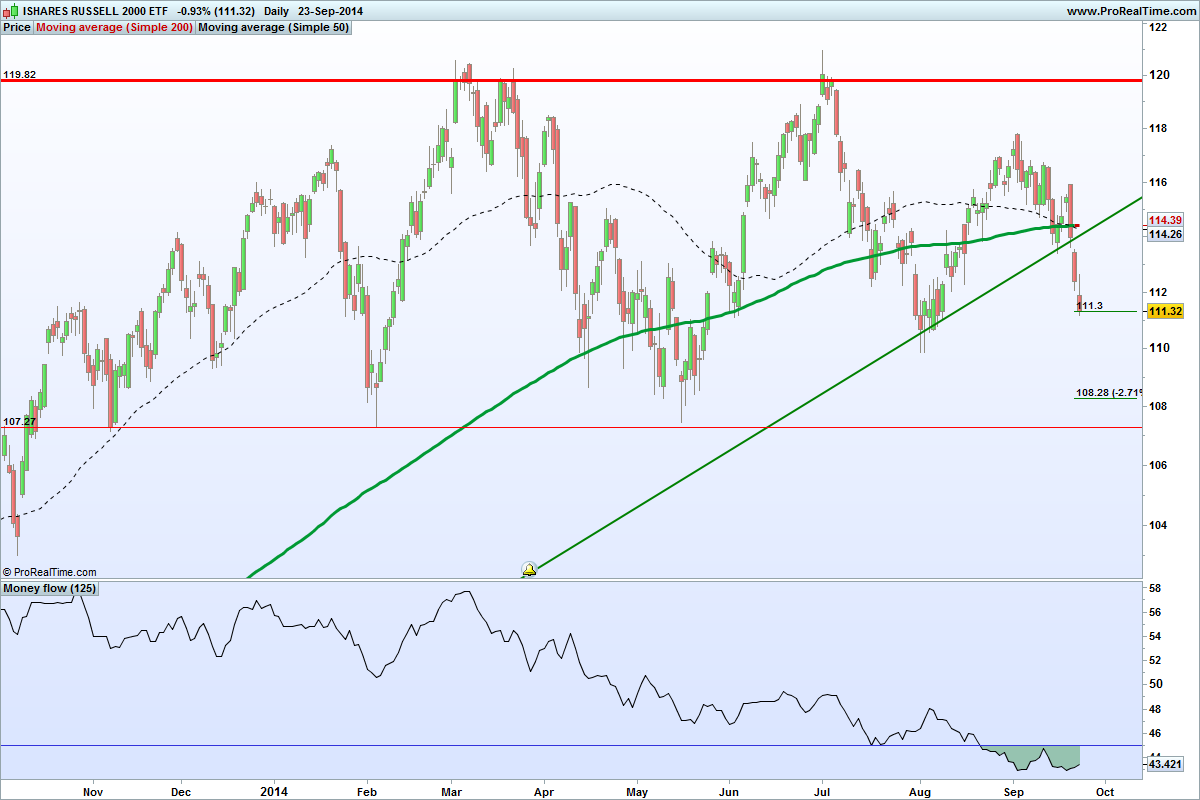 Hoje abri uma nova posição short (IWM) com target nos 108,30 e com stop nos 118,30.