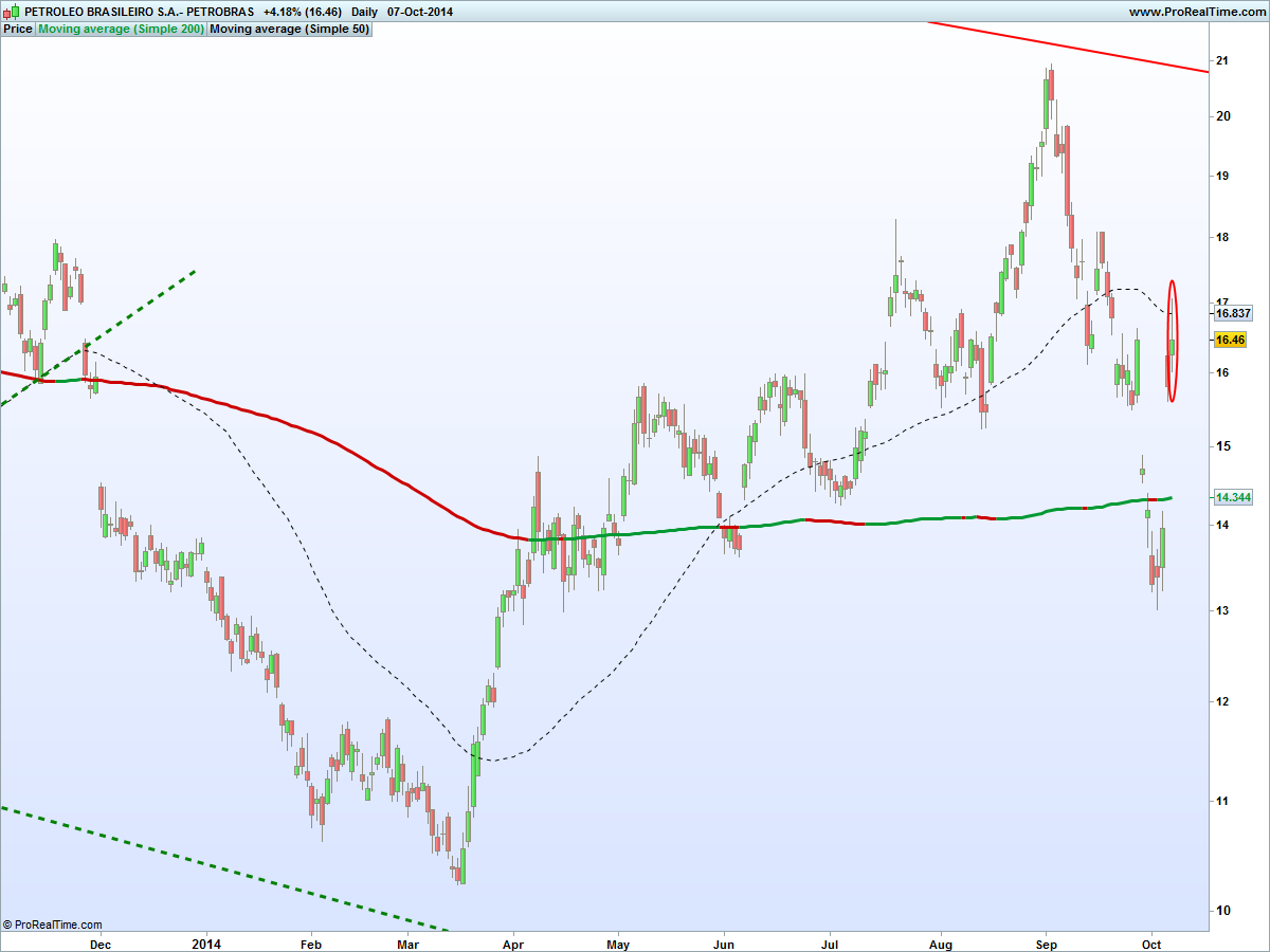 Abri uma posição short na PBR nos 16,39 com 25% da carteira, considero que este fecho de hoje um bom ponto de entrada.