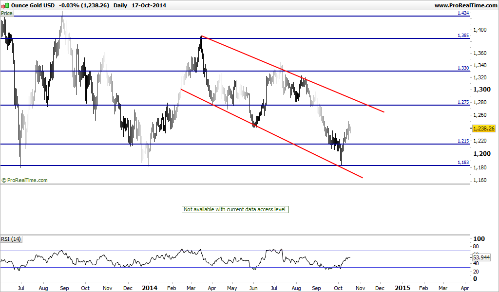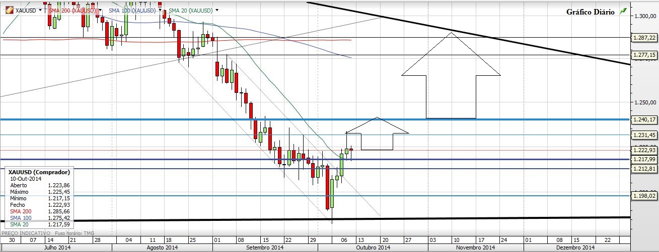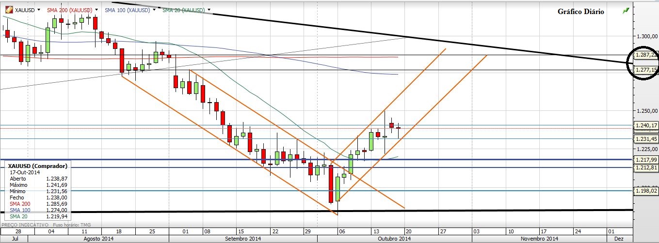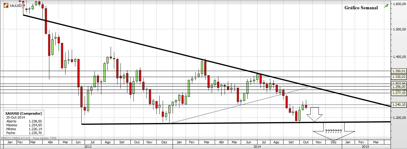 Na minha modesta opinião o Ouro vai agora lateralizar por uns tempos ou subir ligeiramente antes de retomar novamente o sentido descendente. Estou fora do Ouro e sem nenhum activo financeiro.