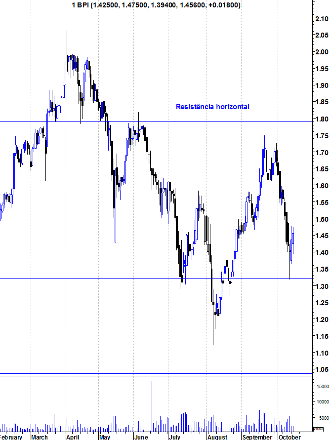 Jà agora, porque motivo os fundos nacionais ^tem vindo a reforçar no BPI? Reforçaram em Setembro (Outubro é outra história). Quando se olha para o Psi18, poucas empresas existem onde se possa apostar considerando-as relativamente "seguras" (vulgo EDP, Portucel, CTT, Renováveis, Galp), tinham pouco potencial de valorização ou estavam em sectores em queda, restando o BPI que estava a sair de um processo correctivo alargado, mas que estava a superar a resistência dos 1.30€/futuro suporte (1.25/1.34)
