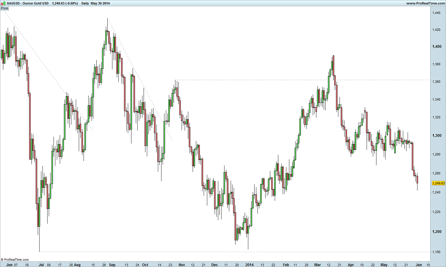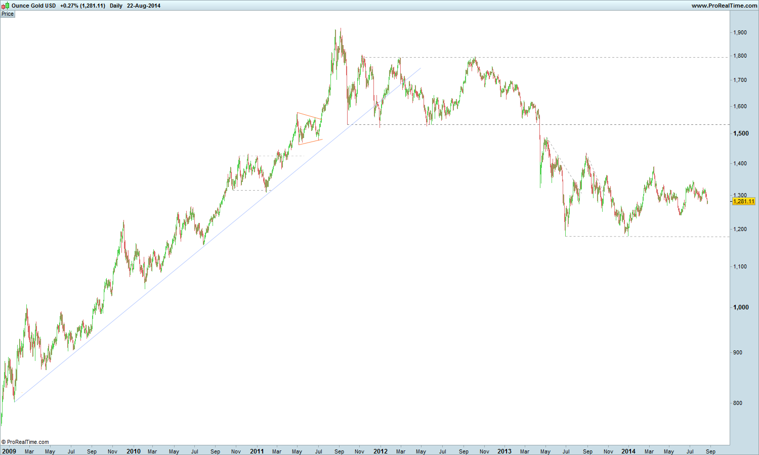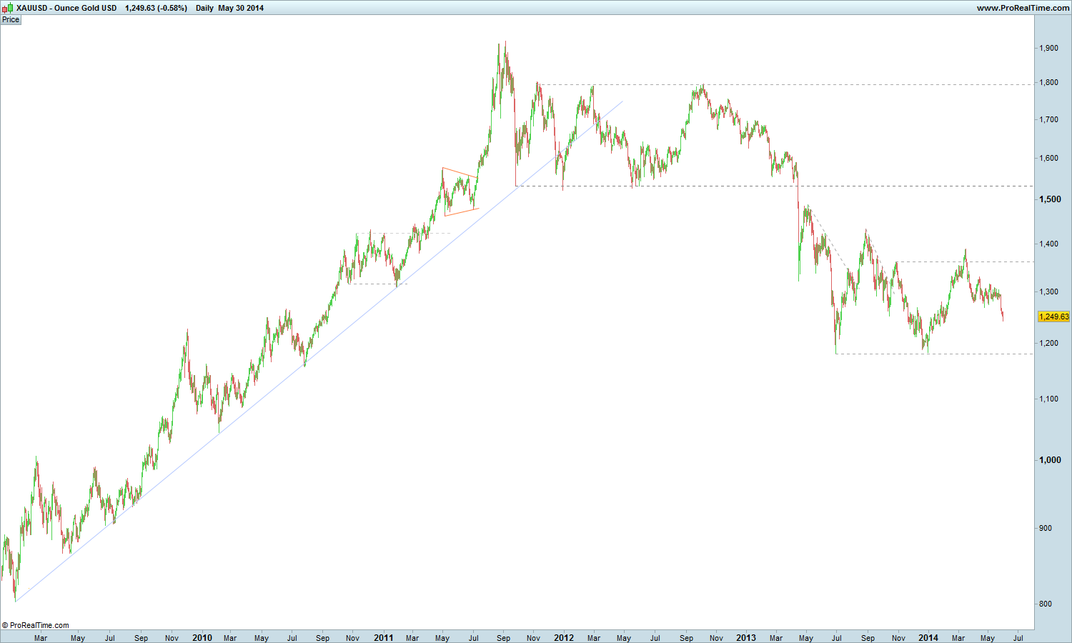 tirando os daytraders e alguns swingtraders, é-me difícil de entender o que é que um trader vê no ouro (o qual se encontra debaixo de uma tendência primária descendente) para o querer negociar: o último máximo relativo tem mais de um ano; quanto à tendência, não vai a parte alguma..