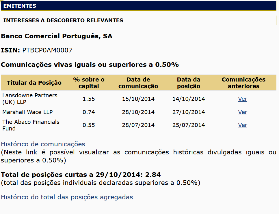 Isso das posições curtas 'comunicadas' não tem uma importância capital como lhe querem analisar, se houver uma subida reiterada identificando uma tendência ou aumento anormal ainda pode ser mais uma 'ferramenta', mas para decidir ponto entrada/saída, posição temporal do investimento não lhe dou relevância - não estou a dizer que estão errados.