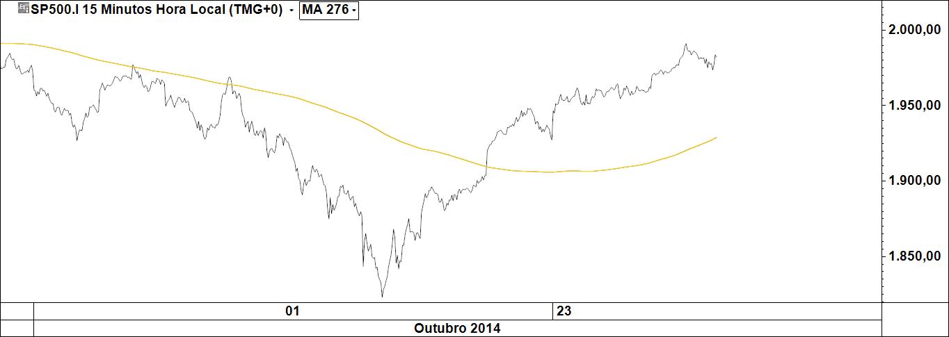 Usando a mm 276 para negociar o sp500: gráfico diário para determinar a tendência; gráfico de 15 m para monitorizar o uso dela para entrar e sair do mercado.