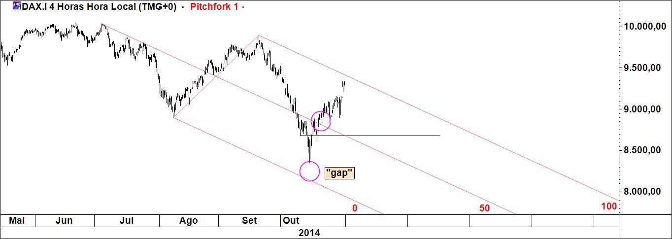 Quanto ao ETF do Brasil (EWZ): a análise técnica realizada apontava para um área compradora muito bem identificada no gráfico. Falei em momento de não-hesitação. A ordem de compra em gráficos diários, tal como sucedeu no nosso outro tópico (oportunidades especulativas II), estava no mercado e, ao ter sido tocada, foi activada. Note-se a linha p0-p2 dando p5 num lugar onde "supostamente" estariam compradores. Para quem hesita, seguir com atenção a linha p0-p4. A linha p1-p4 pode ser muito interessante. Tal como o carteiro, o preço gosta de tocar na zona mais do que uma vez. Quem quiser pode traçar uma forquilha usando p1-p2-p3 e constatará igualmente algo com valor. A entrada pode ter sido algo cedo, quase do tipo bottom picking. Foi feita com esse propósito: entrar quando poucos querem fazê-lo. Como a entrada tipo rebanho é muito procurada, é com prazer que a deixamos para os experts. Quem entra bem cedo deve sujeitar-se a que o preço volte à zona e passe algum tempo a lateralizar. É o preço da antecipação.