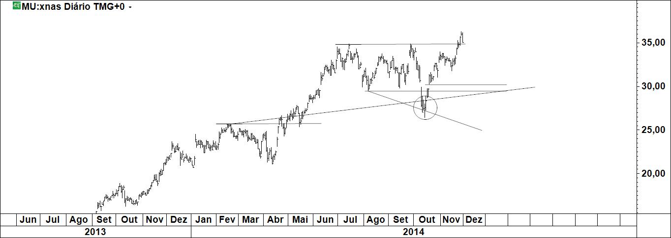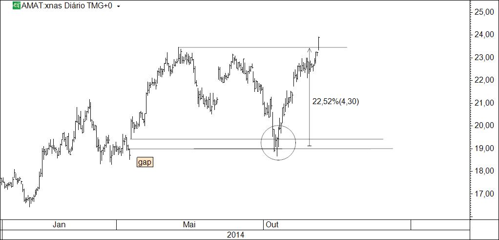 Uma vez que no passado recente houve uma luta interessante em que os touros ganharam entre os traços verdes colocava o stop na linha Azul que é seguimento de uma linha tua