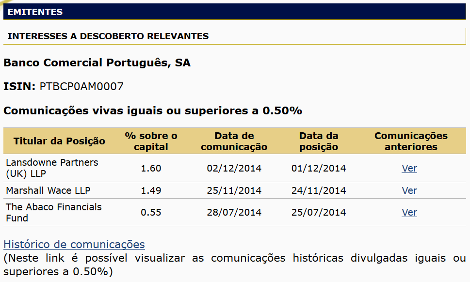 general já tinham postado mas desde já obrigado por voltares a lembrar a partir do dia 22 irá ser tomada por parte dos fundos não esquecer que eles curtos vão ter de realizar mais valias a não ser que esperem só para o próximo ano o que não creio relativamente a outro mínimo bem o outro mínimo já foi feito nos 0.0734 continuo a achar que não deverá voltar mas isso vai depender do BCE states e Novo Banco pelo que sei entre hoje e amanha já saberemos sobre a situação do novo banco e até possivelmente sobre o BCP