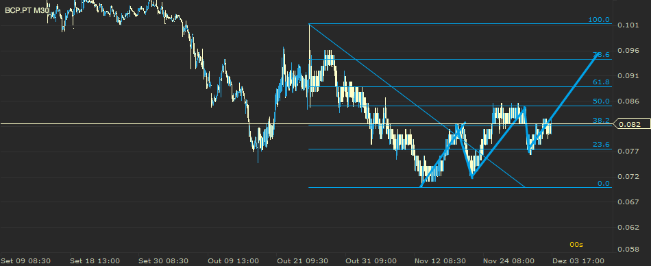 bem o que penso sobre o BCP falta confirmar o terceiro higher high e Higher low para confirmar inversão de tendência assim espero