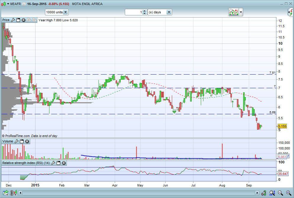 A Mota-Engil África entrou em bolsa há menos de um ano, a 24 de Novembro de 2014, com um preço de 11,5 euros por acção. À cotação de hoje, vale 5,25 euros, ou seja menos de metade.