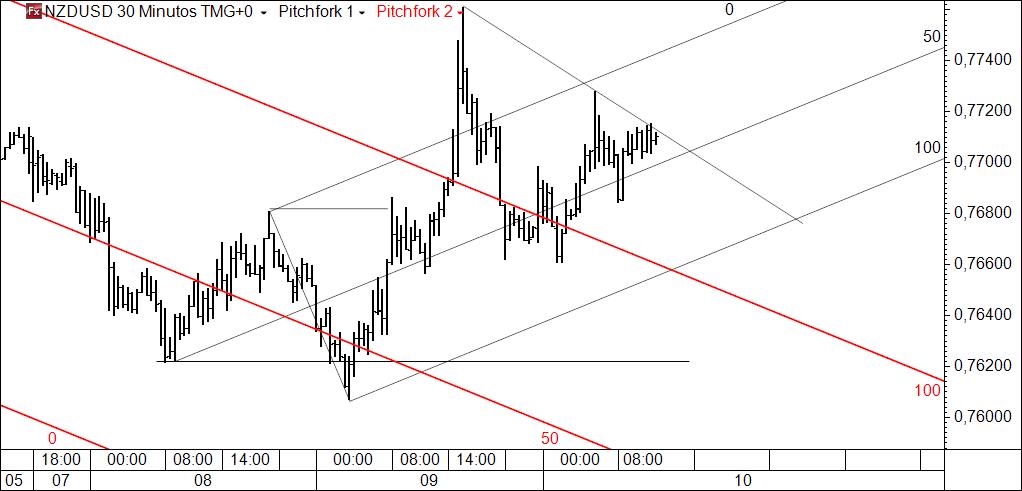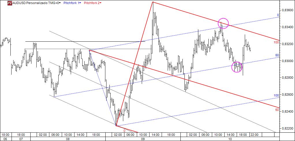 nzdusd e audusd: duas oportunidades especulativas (compradora e vendedora) em ambos os mercados, construídas com base nas linhas, aguardando-se apenas que o mercado "construa" a stoploss.