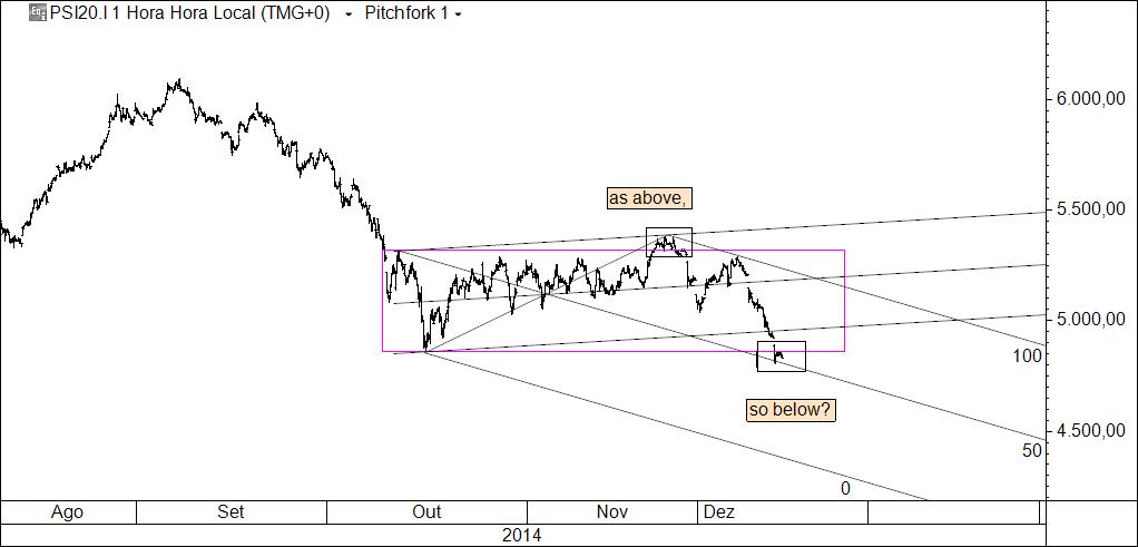 E não é que o target (a linha superior) foi atingido ainda hoje? Ver gráfico infra só com o fork que deu o target (como sabem, por regra é "negociação à linha").