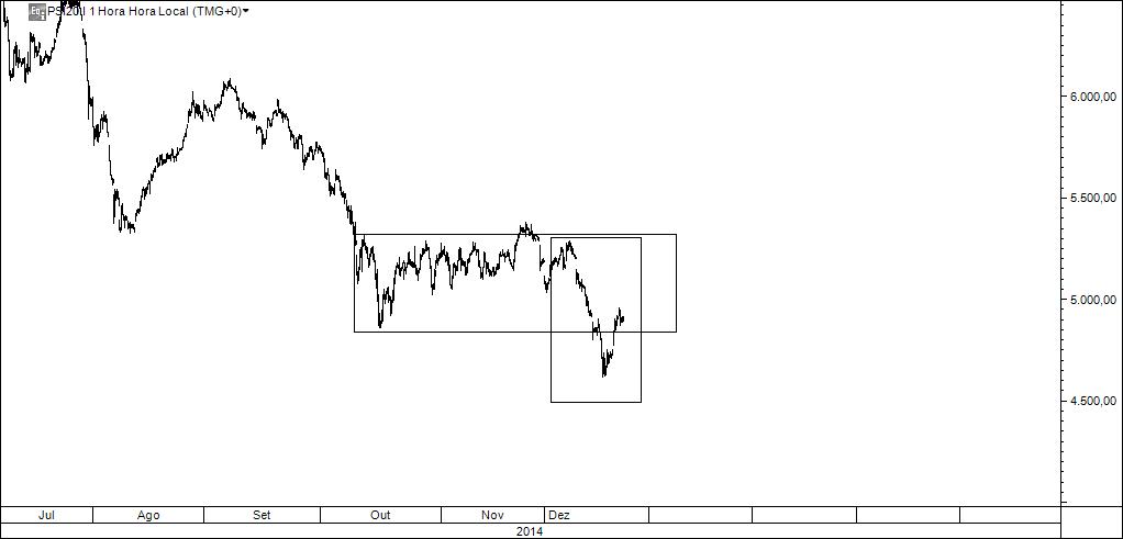 Somente a benefício da discussão, vamos admitir que esse local, sendo revisitado, poderia dar uma entrada compradora. Pergunto: onde colocaria a stoploss (se a vai usar) e qual seria o target? Na minha maneira de ver as coisas e de abordar o mercado, se não conseguir responder a estas duas questões de forma satisfatória (isto é, de acordo com regras que pré-estabeleci para o trading), não colocarei o dinheiro em risco.
