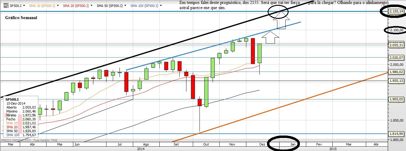 Parece-me provável que na semana do Natal não aconteça a tal correção que, passadas 3 sessões de subidas já muitos começam a ansiar... (nem na semana do ano novo). Mas isto nunca se sabe... O que eu gostava agora era de uma bandeirinha vulgo "Bull Flag" para um ataque aos 2100/2155 e para isso o Preço até poderia ir aos 2050. Mas parece-me mais provável o cenário que indico de um pequeno canal ascendente até lá acima, como em situações recentes aconteceu...