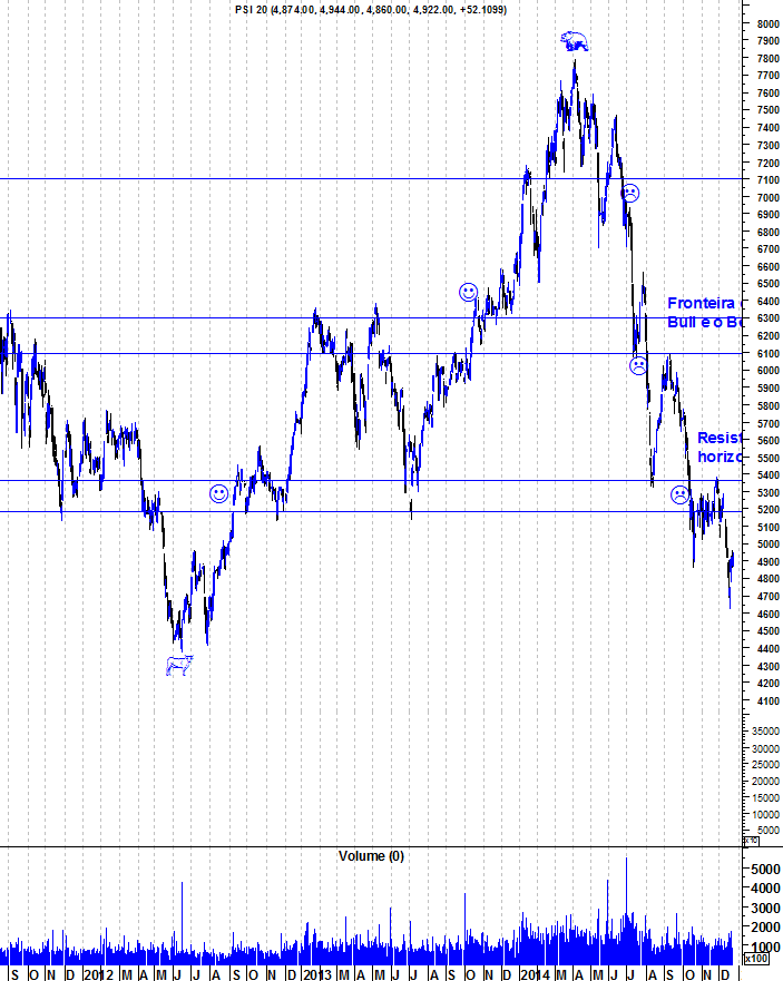 - o psi teve um desempenho terrivel em 2014. o mercado pressionou sempre até ao fim, como se tem tornado habitual nos mercados mundiais, onde os ganhadores são pressionados em alta e os perdedores em baixa, exacerbando os movimentos para lá do "razoável".