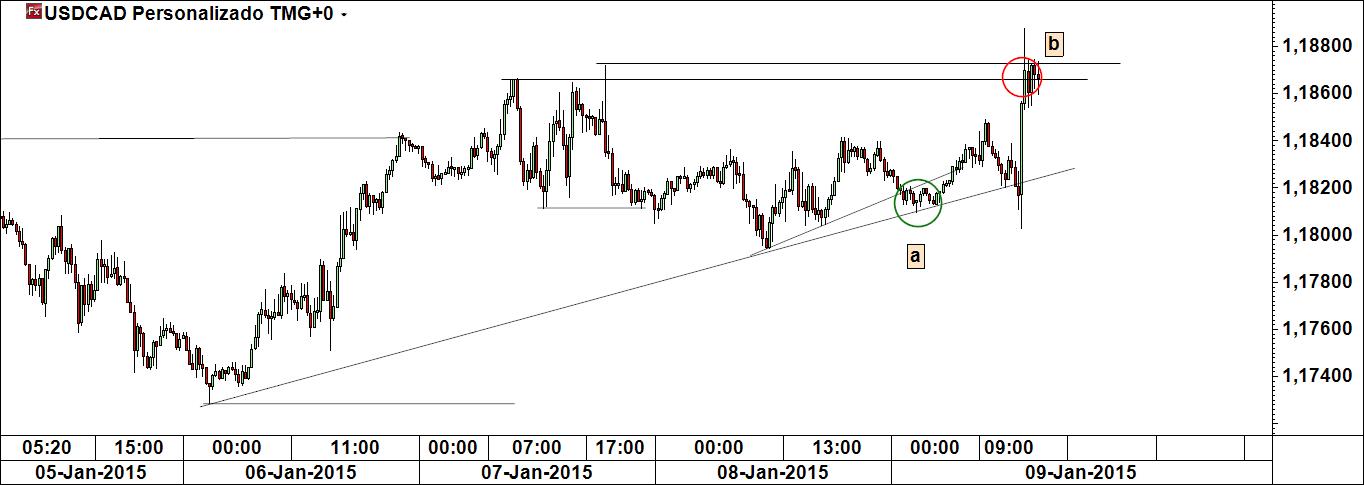 O mercado tem destas coisas: podemos planear à vontade que é ele que manda. Mas, como plano é plano, temos de o seguir. Um bom exemplo é o usdcad: planeou-se para a semana, colocaram-se as ordens no sistema e o mercado executou hoje (entrada em a e saída em b como, aliás, se havia dito com expressa identificação das linhas, que nada tinham de extraordinário). Negócio encerrado.
