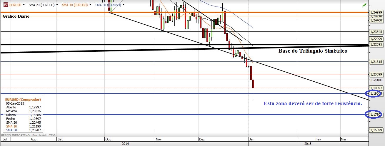 Novo Ano com o EUR/USD a começar logo a se encostar à zona de suporte: os velhos 1.2030/40 estão aí. Não deve ser fácil passar daqui. Esta zona vai deste ponto até aos 1.1880/60