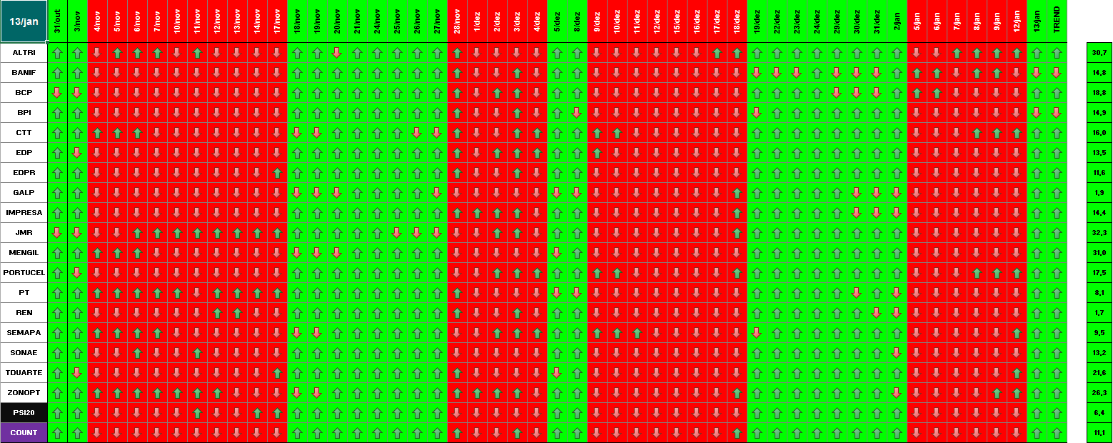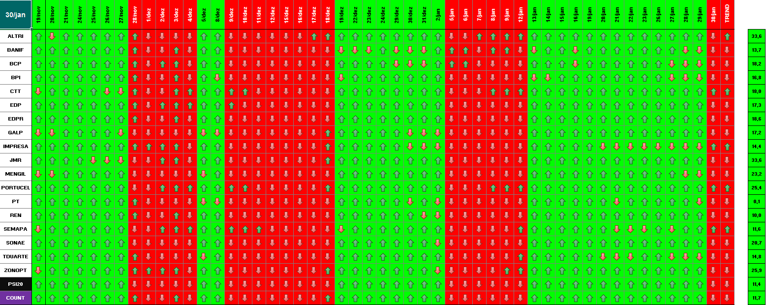 Aproveito para informar que as habituais tabelas aqui apresentadas do PSI 20 estão agora na mesma sequência cronológica.