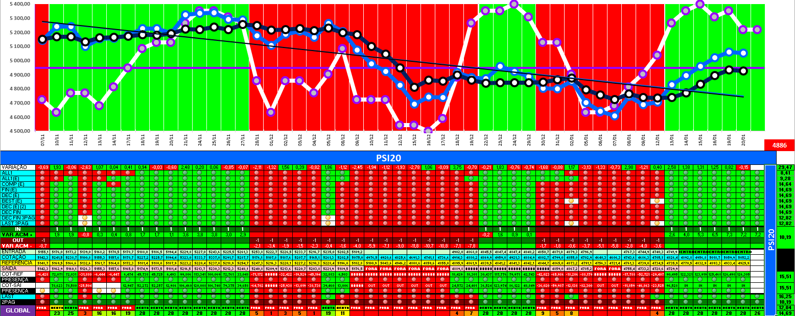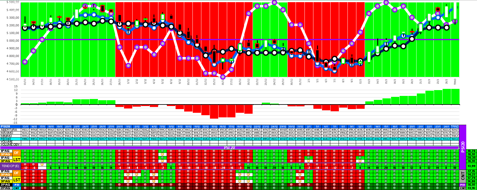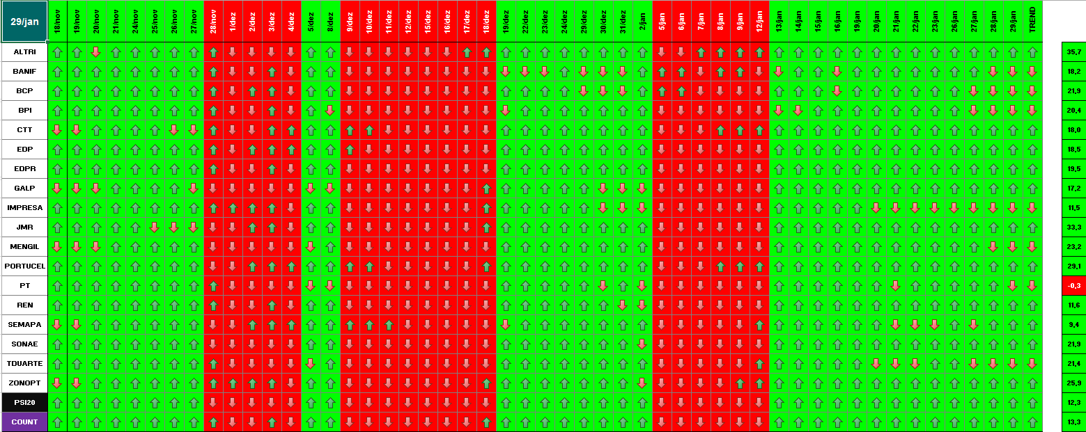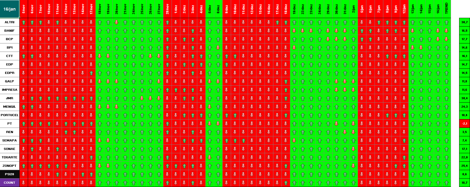 A modelo mais agressivo voltou a estar positivo. Hoje o indice PSI 20 ganhou energia... e deu sinal de arranque... ainda não totalmente confirmado.