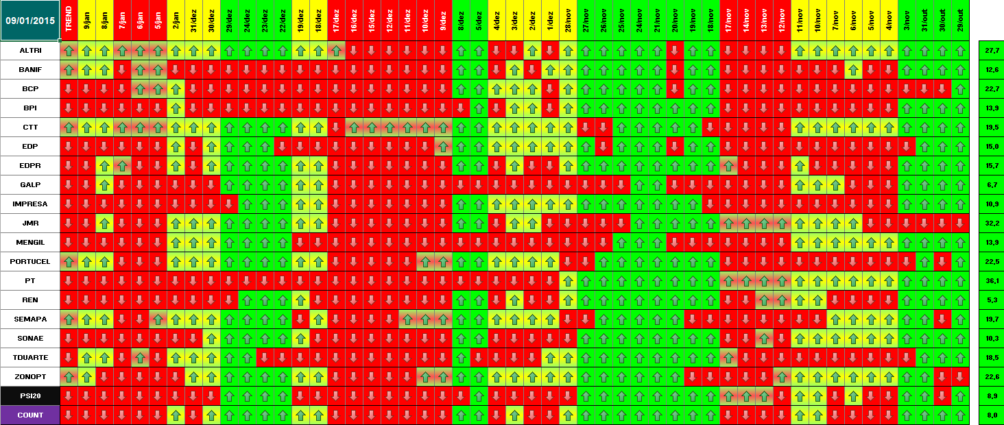 Segue em baixo informação / quadros atualizados com os dados de 08 de Janeiro de 2015.