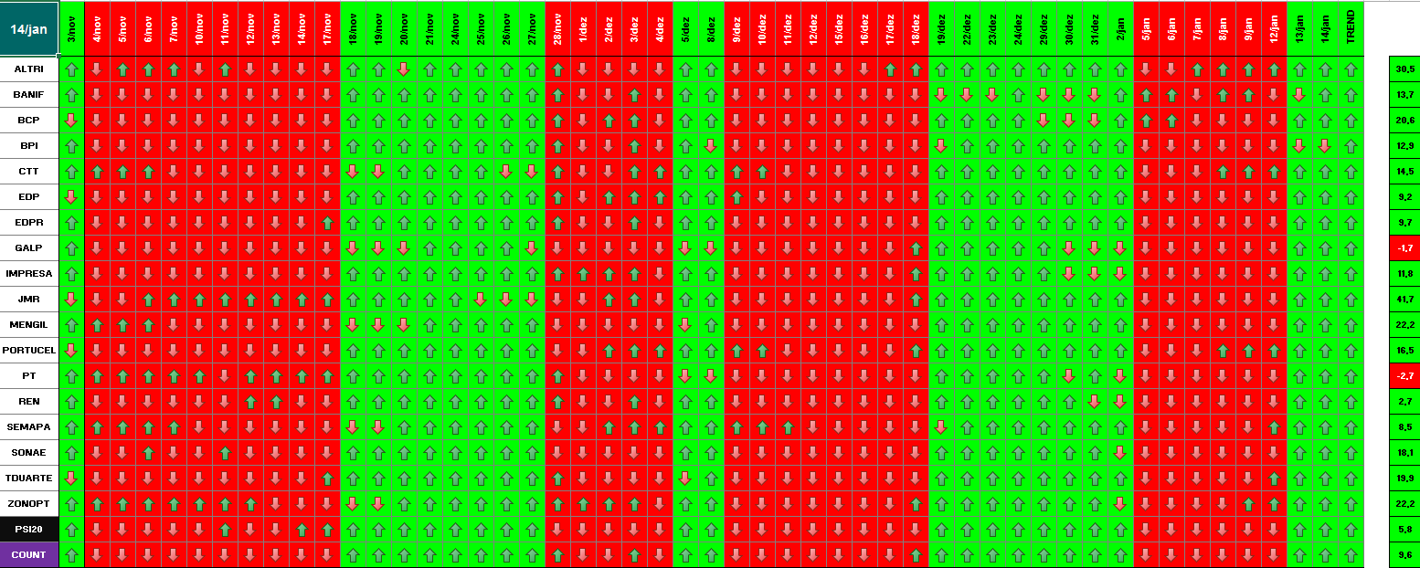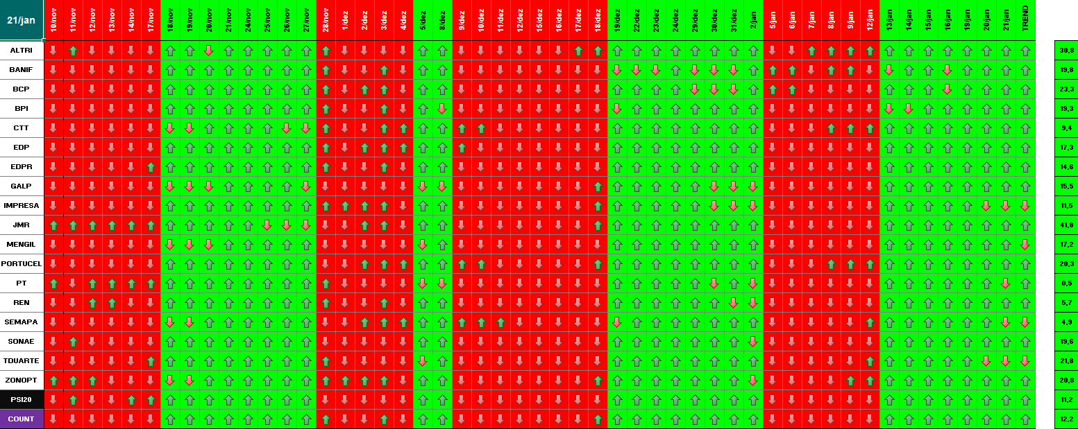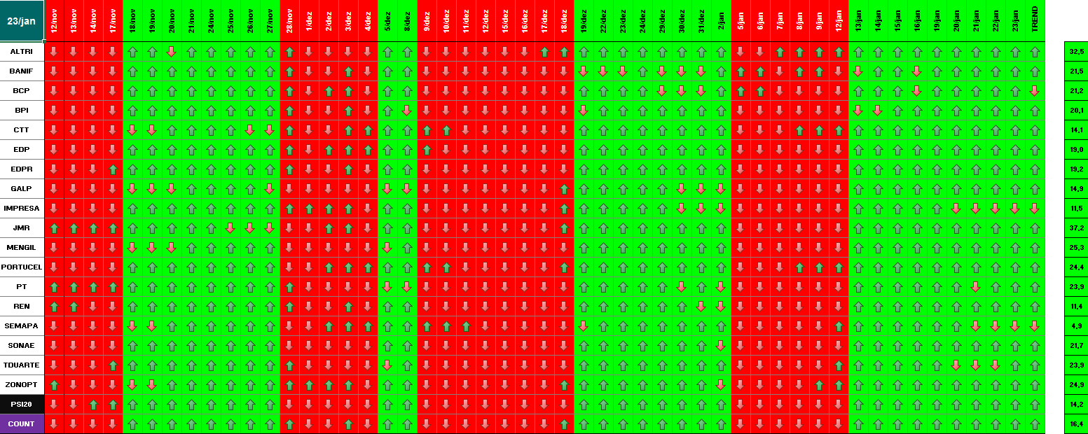 Aproveito para informar que as habituais tabelas aqui apresentadas do PSI 20 estão agora na mesma sequência cronológica.