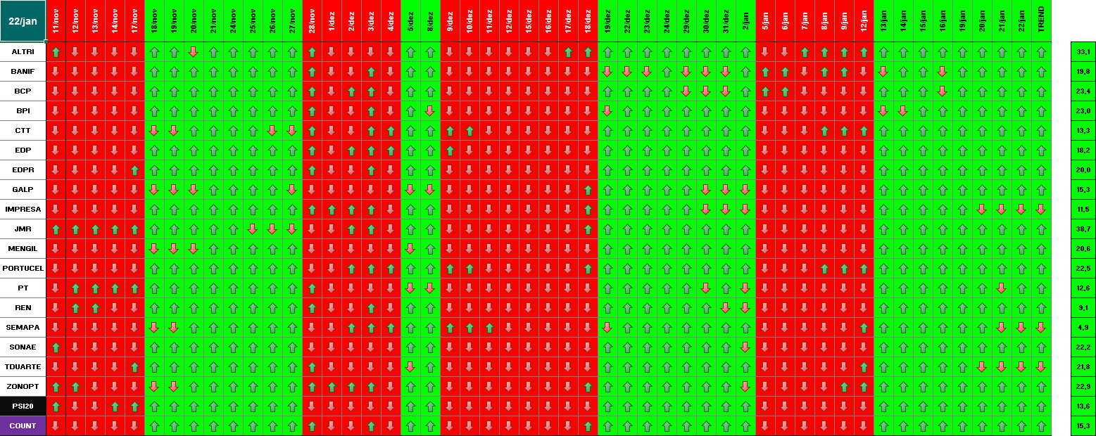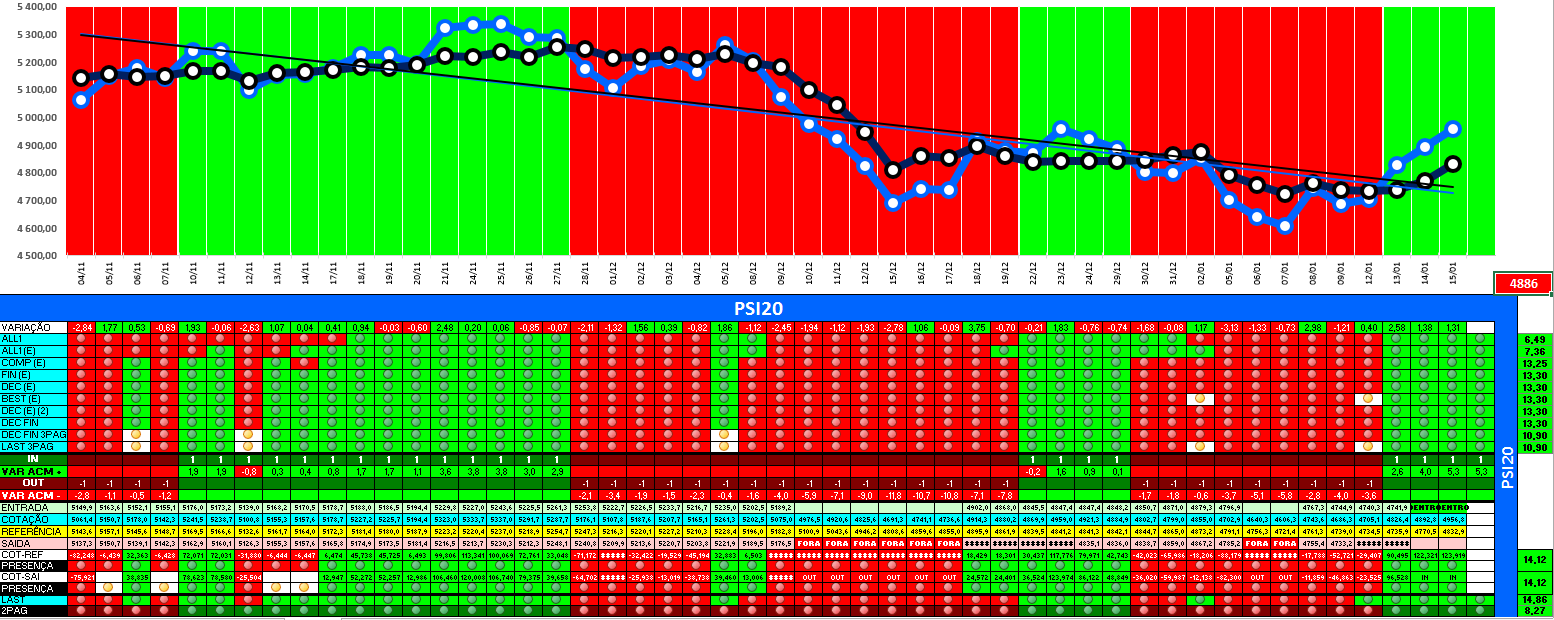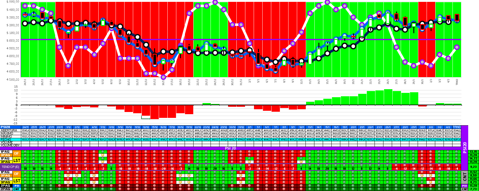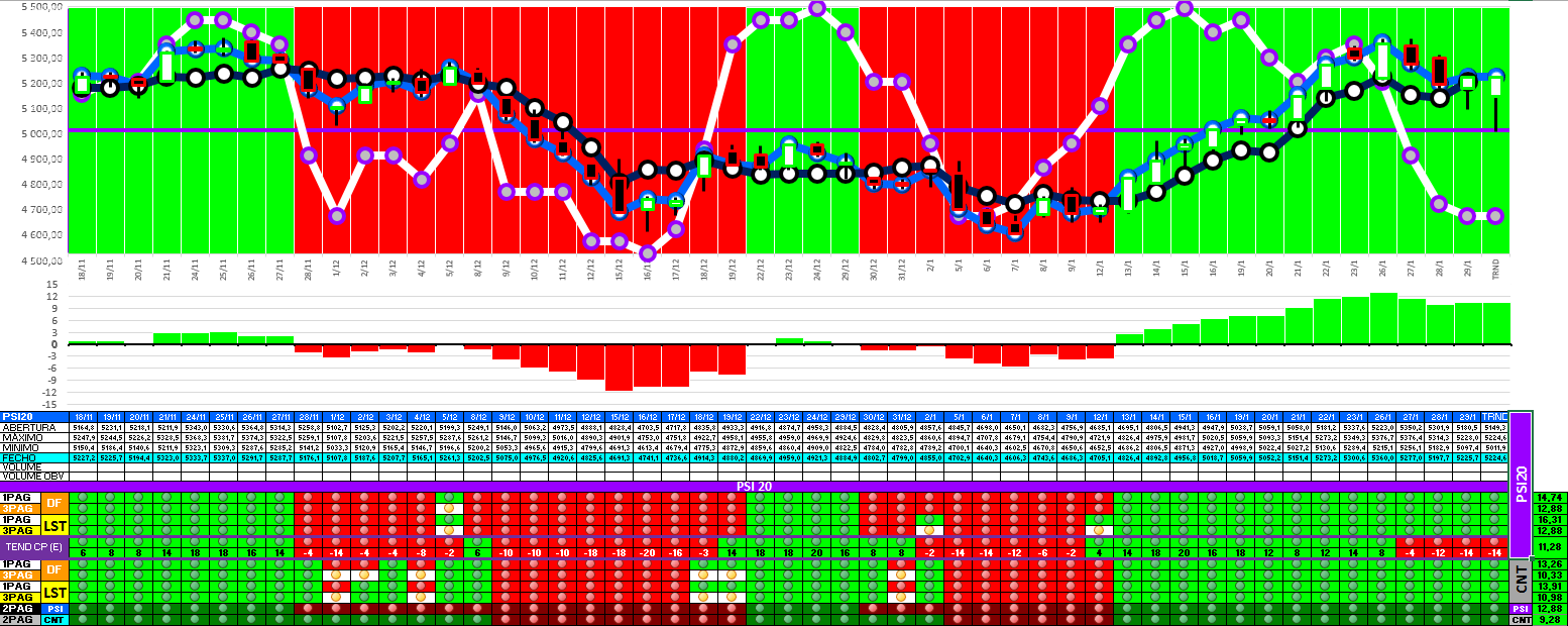 A modelo mais agressivo voltou a estar positivo. Hoje o indice PSI 20 ganhou energia... e deu sinal de arranque... ainda não totalmente confirmado.