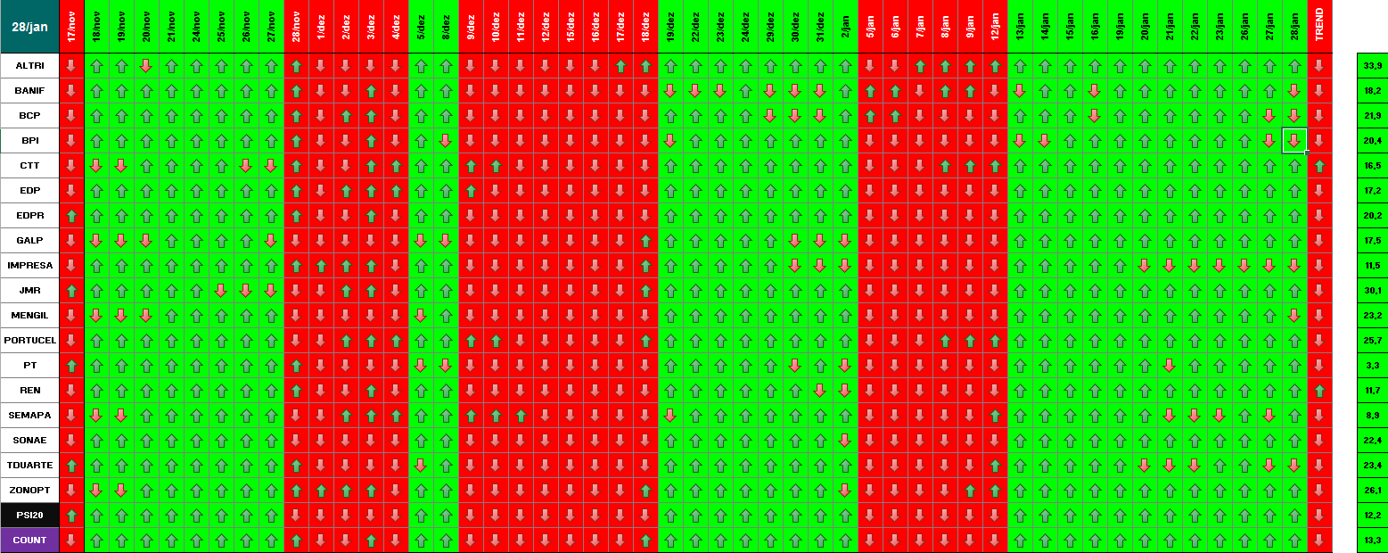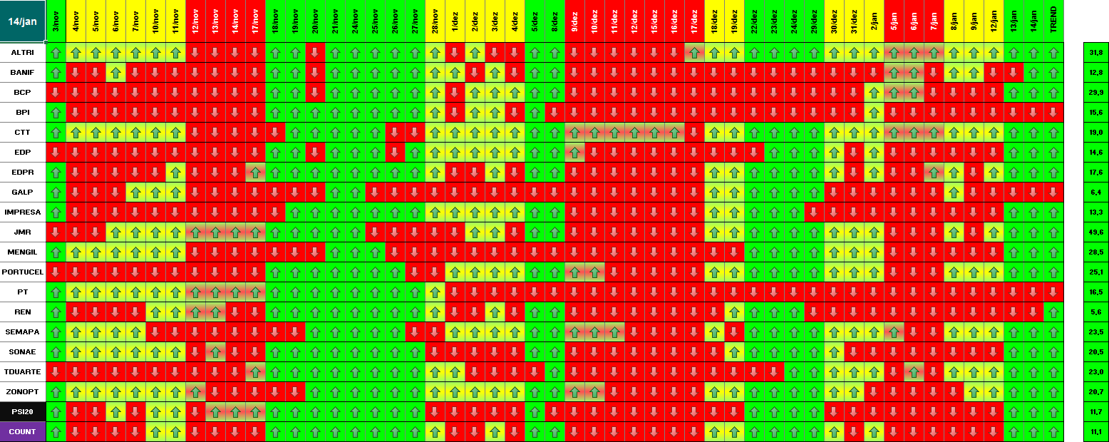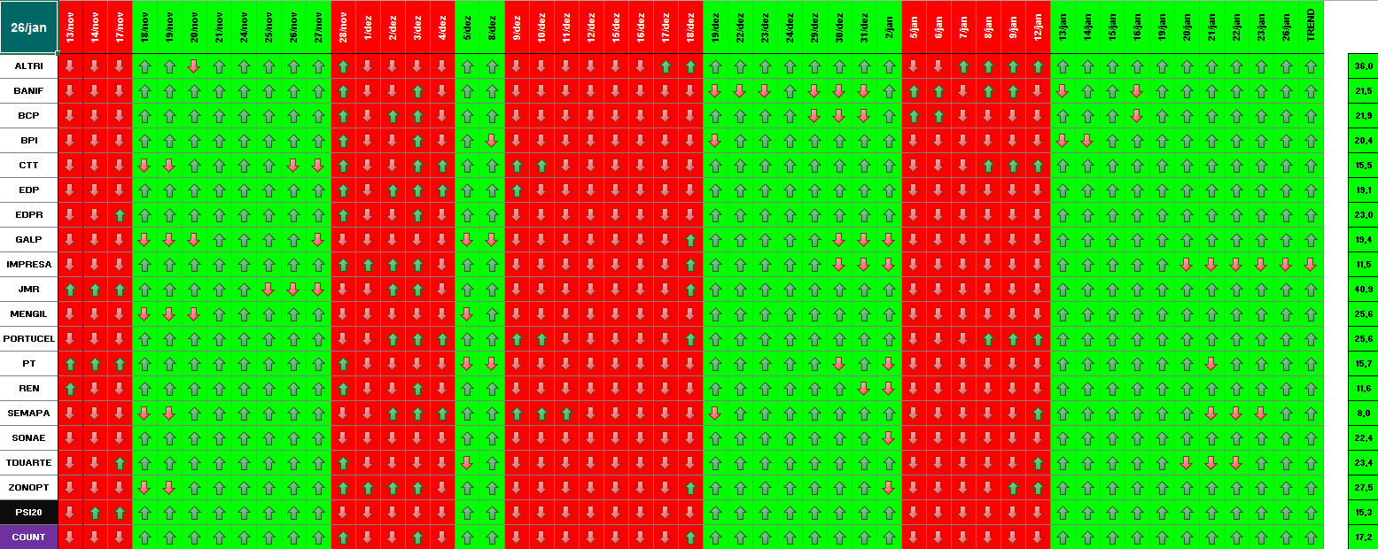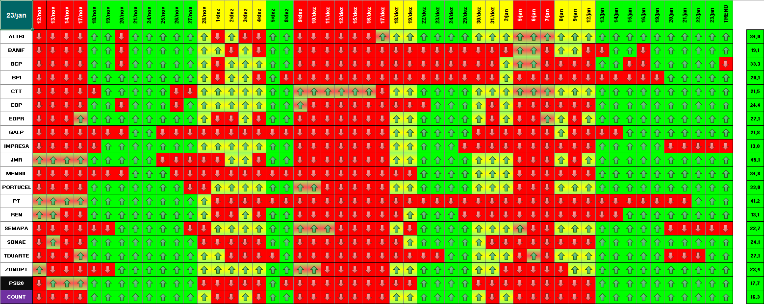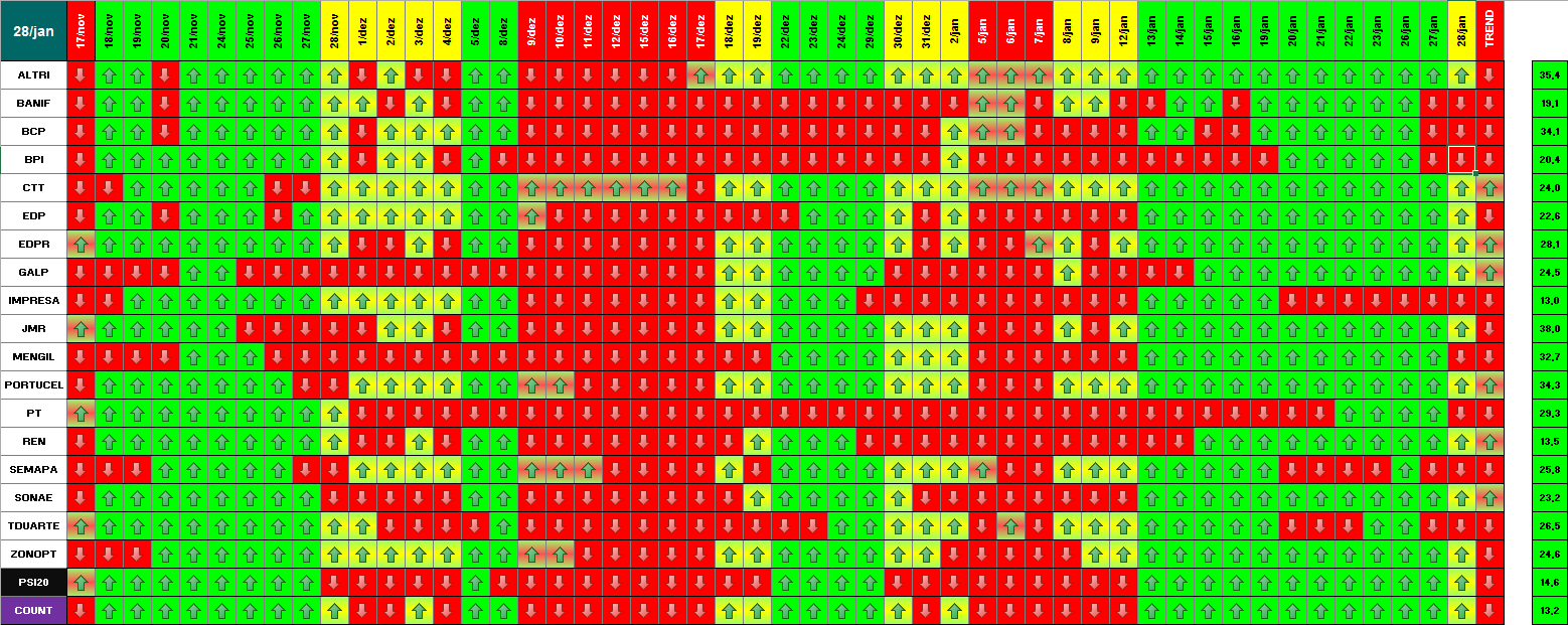 A modelo mais agressivo voltou a estar positivo. Hoje o indice PSI 20 ganhou energia... e deu sinal de arranque... ainda não totalmente confirmado.
