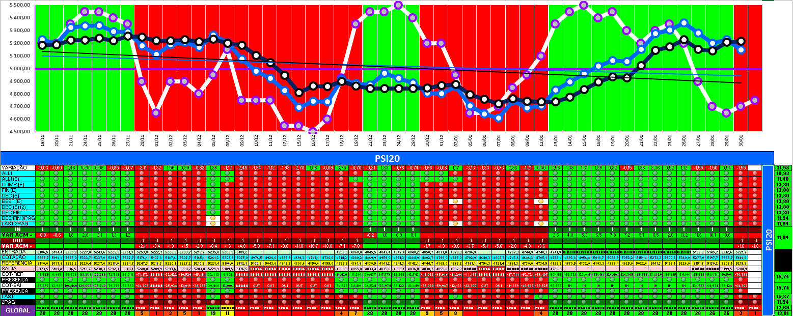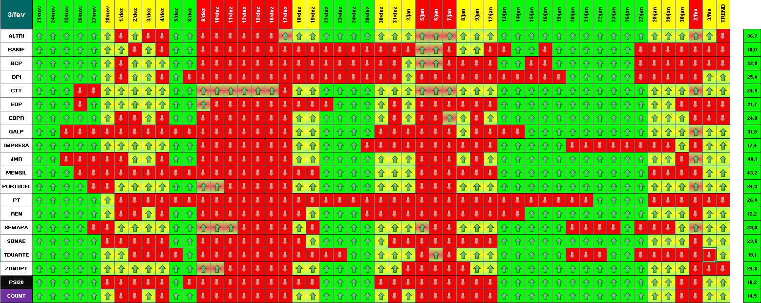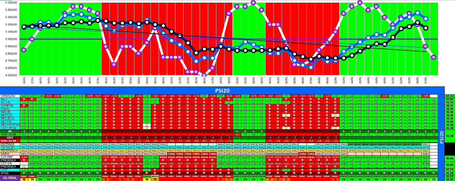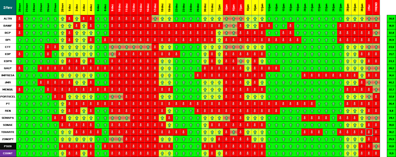 A modelo mais agressivo voltou a estar positivo. Hoje o indice PSI 20 ganhou energia... e deu sinal de arranque... ainda não totalmente confirmado.