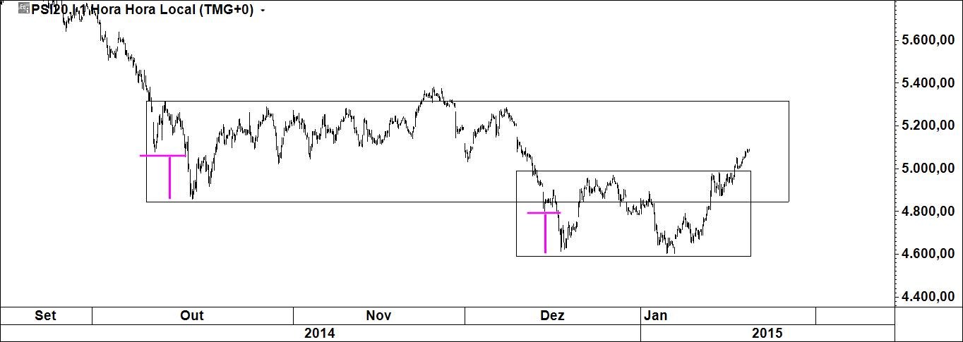 - 1º grafico amplifica a área onde, como se disse, estará a razão que pode levar à inversão da tendência. Quem quiser debruçar-se sobre ela deverá deixar à porta tudo o que traz às costas em termos de análise técnica ou fundamental, assumam elas a natureza que assumirem (o uso de cábulas só turvará a leitura).
