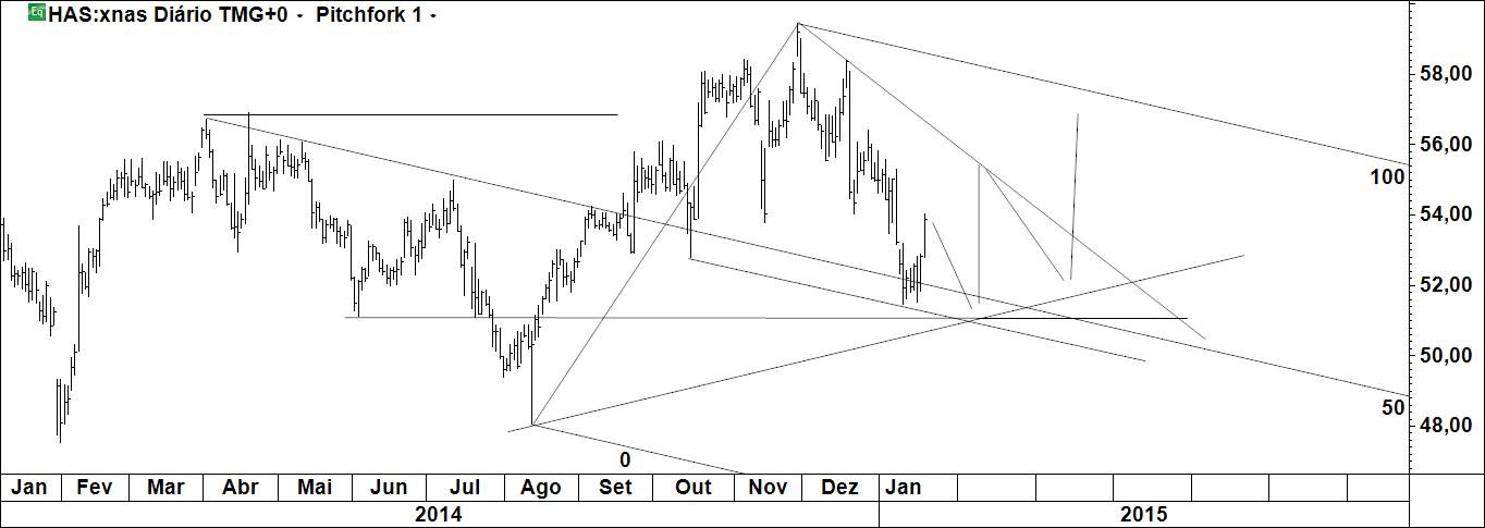 Do FI Alquimia 2015 faz parte o etf EEM. Tendo o investimento sido aberto à linha, à linha será fechado, para uma potencial subida perto dos 12%. Está pois colocada ordem de venda na median line. Logo que o preço vença o swing imediatamente anterior a stoploss será colocada em b/e: jamais um investimento que nesse momento registará cerca 8% poderá incorrer numa perda. A carteira é minha e é assim que faço a gestão activa de um activo passivo. Acredito na continuação do movimento ascendente mas como sou um swing trader esperarei por uma correcção para ponderar uma nova entrada. Aí sim, o objectivo será mais ambicioso.