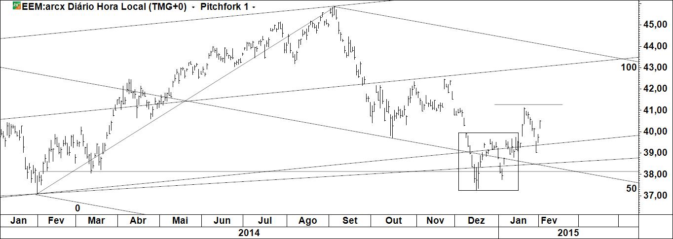 O Alquimista Escreveu:Do FI Alquimia 2015 faz parte o etf EEM. Tendo o investimento sido aberto à linha, à linha será fechado, para uma potencial subida perto dos 12%. Está pois colocada ordem de venda na median line. Logo que o preço vença o swing imediatamente anterior a stoploss será colocada em b/e: jamais um investimento que nesse momento registará cerca 8% poderá incorrer numa perda. A carteira é minha e é assim que faço a gestão activa de um activo passivo. Acredito na continuação do movimento ascendente mas como sou um swing trader esperarei por uma correcção para ponderar uma nova entrada. Aí sim, o objectivo será mais ambicioso.