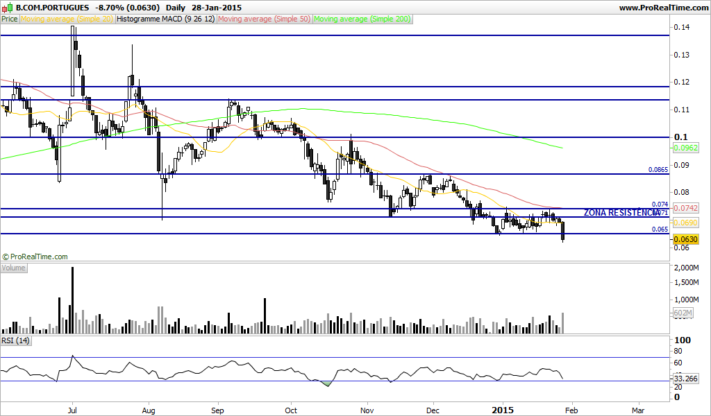 Enquanto a cotação do BCP não sair do "canal caveira" (canal descendente), rompendo a sua margem superior, não encaro a entrada neste título ...