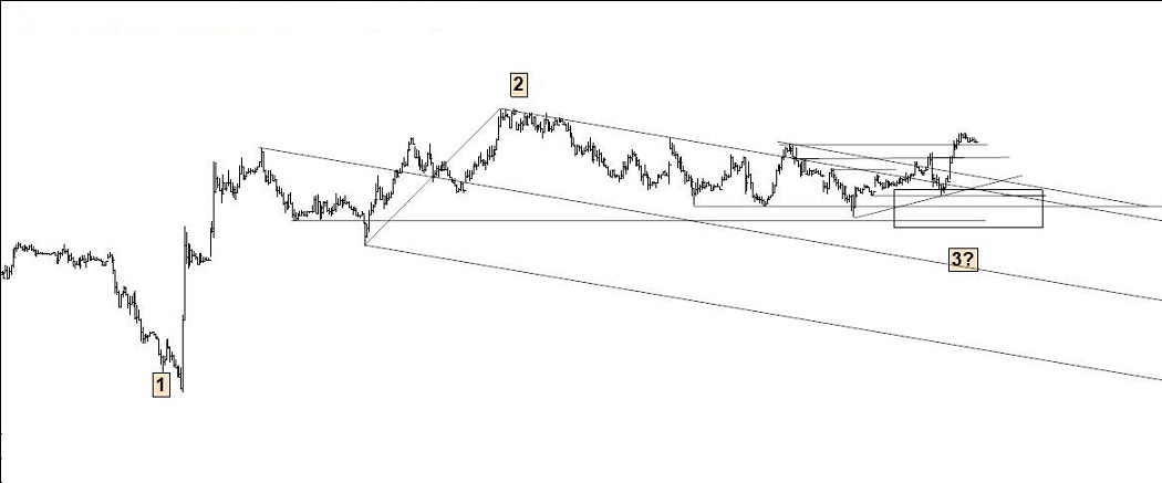 O negócio em curso foi encerrado por ter sido atingida a stoploss. Esta ordem deveria ter sido colocado em b/e logo que o preço, no primeiro movimento ascendente, quebrou a linha média e fez um novo máximo relativo. Ou então ter liquidado a posição logo que foi atingida a ML. Fazendo uma análise post mortem dir-se-á que o negócio tinha os condimentos para não proporcionar um novo máximo. Em que sentido apontada a ferramenta? Sentido descendente. Um qualquer negócio contra a corrente tem sempre uma esperança de via curta, daí que seja importante traçar targets menos sumarentos (não foi o caso). Um target menos sumarento seria a linha média, a tal que quando foi atingida suscitou este meu comentário colocado num post acima : "por se ter atingido uma linha a posição já podia ter sido encerrada, mas não é caso quanto à minha posição". Este foi um primeiro alerta olimpicamente ignorado. No caminho para o target quais os obstáculos que se apresentavam? Desde logo a linha média de uma forquilha descendente. Tinha sido quebrado um swing relevante? Sim. Foi isso tido em consideração? Não. Qual a razão? Cegueira assente na fixação pela compra ( o anterior negócio tinha sido uma compra). Há algum tempo disse que num negócio que venha a revelar uma perda haverá qualquer coisita que não foi tida em devida consideração. Neste caso foram várias as coisitas ignoradas.