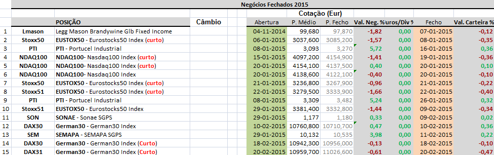 Vou ausentar-me, com este fecho dou por encerradas todas as posições de trading de curto/médio prazo. A situação na Grécia pode criar alguma instabilidade pelo que manter posições sem poder acompanhar devidamente torna-se complicado.