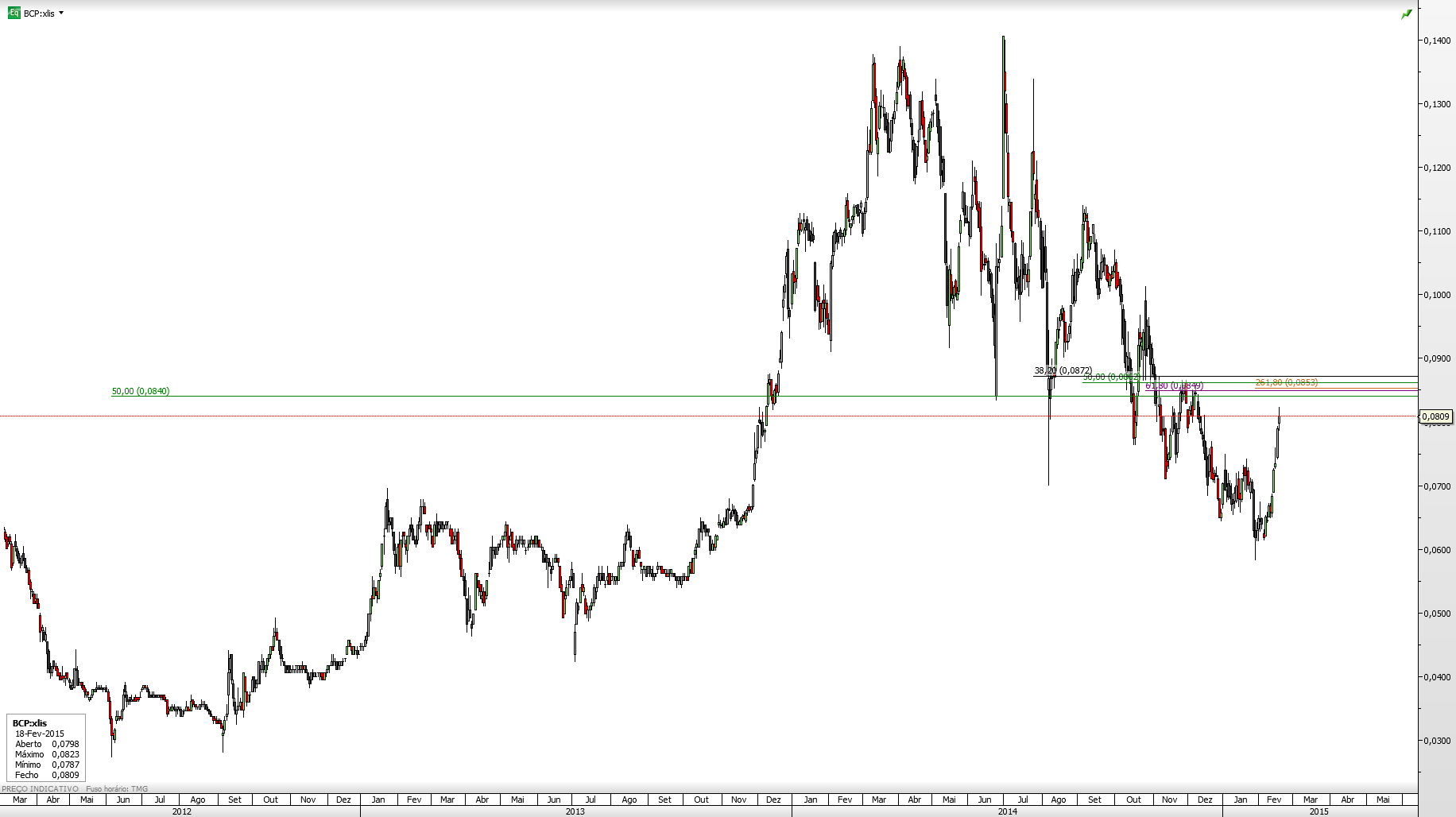 A subida do BCP hoje foi expressiva, havia para mim a linha dos 0,072-0,073 como teste que parece que foi dizimado hoje, com volume associado. E eu ausente![]()