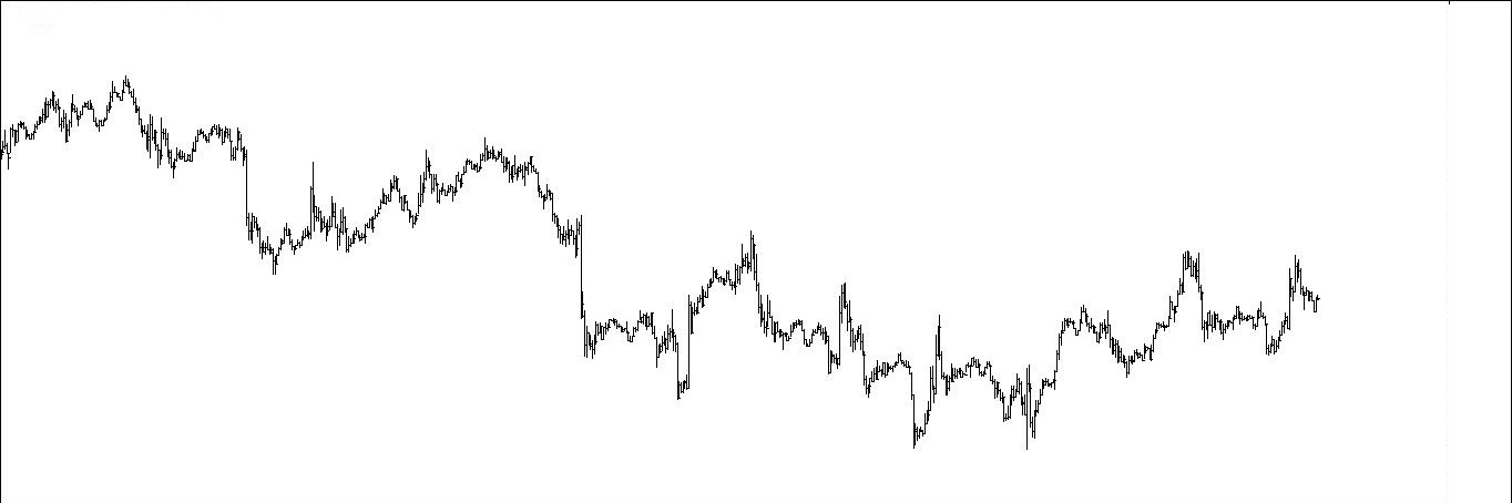 Gráfico 1 só com o preço para determinar a tendência: descendente. Não preciso nem quero consultar outros timeframes ou indicadores. Eu planifico e negoceio no timeframe do gráfico e faço-o preferencialmente "para a direita".