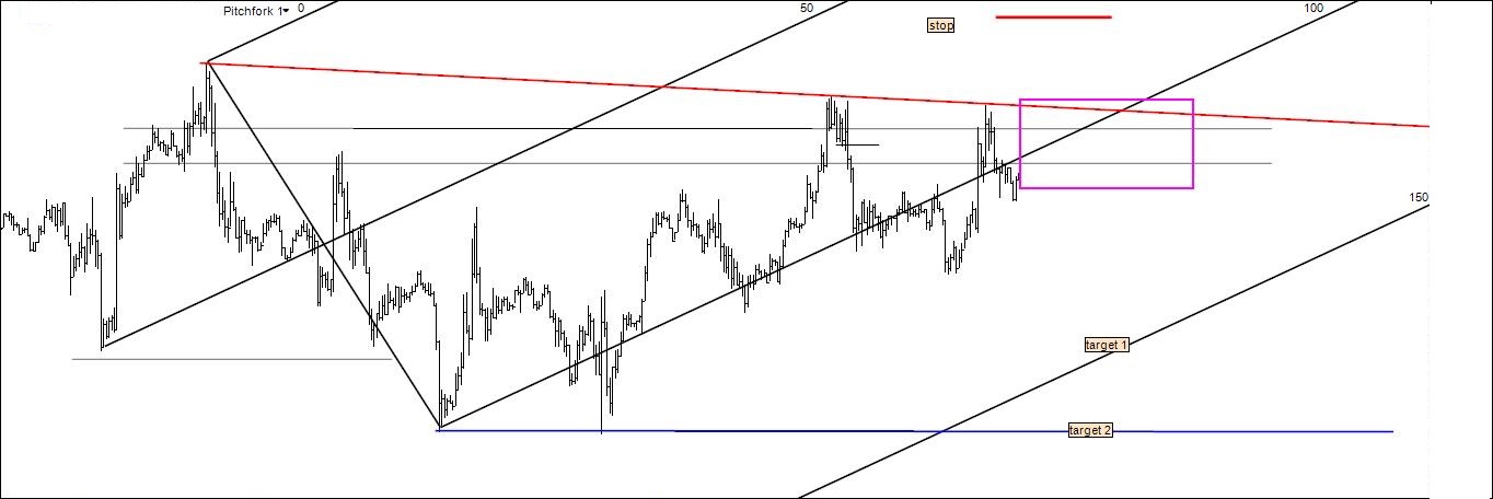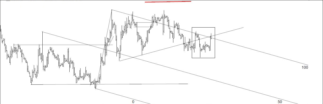 Do que percebi, diria tb que utilizaste a linha inferior da fork ascendente como resistência a qual, juntamente com a linha descendente de máximos, deverá, na intersecção das duas linhas, criar uma zona ideal para shortar... (o tal X no mapa do tesouro que o T. Morge refere num qq artigo), isso parece-me claro.