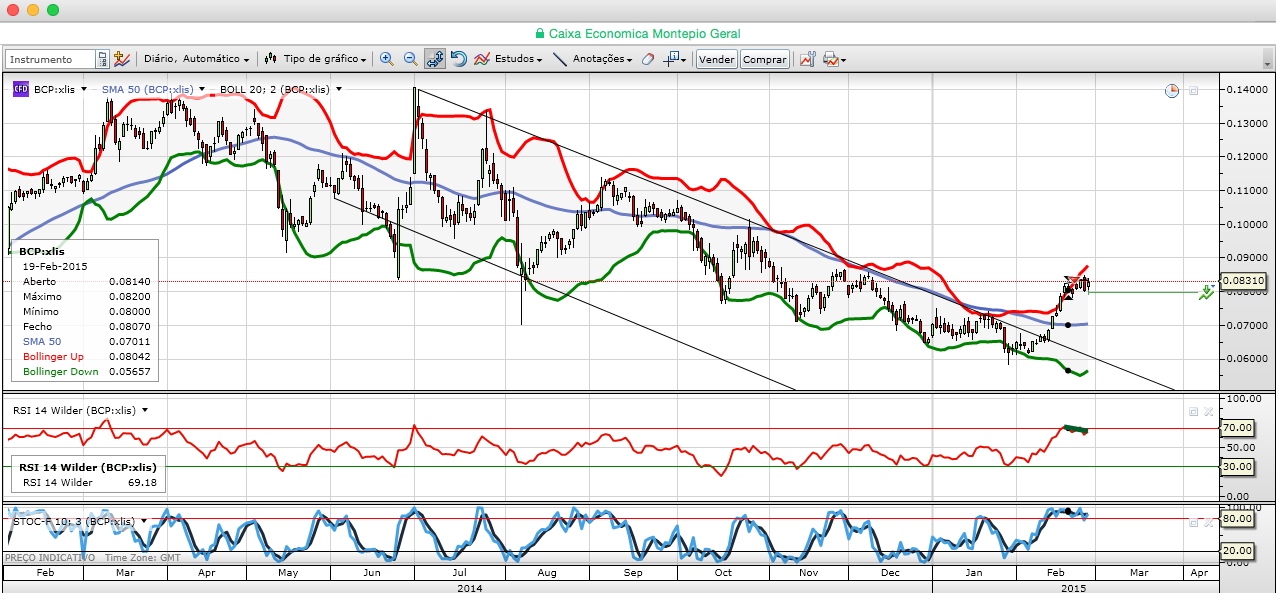 Eu desconfio sempre que há muita gente a apelar à compra, e sobretudo quando vejo institucionais a apelarem para que se compre BCP. O BCP teve em meia-dúzia de dias uma valorização estonteante, fabulosa. Está agora por baixo de resistências fortíssimas para além de ter todos os indicadores muito esticados. Os apostadores do costume aumentaram os shorts, mas há aqui malta que insiste mais do que nunca que esta é que é a melhor altura para entrar. Não vi o Nyse123 vir sugerir a entrada quando ela estava lá em baixo!!!!! Portanto, muito cuidadinho a partir daqui. Não quero dizer com isto que não possa subir, mas as subidas a partir daqui são ratoeiras do mercado, são ratoeiras dos institucionais. Ora vejamos: na noite do domingo das eleições gregas, este jornal publicou uma notícia na capa e em destaque para que toda a gente visse, onde elogiava valentemente a bolsa portuguesa. Na altura, critiquei-a avisando de que quem entrasse na segunda-feira iria ter de saber que iria fazê-lo para a seguir ver as acções cair. Caíram 20% sensivelmente!!!!!! Mas o jornal elogiou forte e feio a nossa bolsa na noite anterior! Porque fez isso precisa e tão-somente após o fecho das urnas na Grécia???? Podia tê-lo feito na sexta-feira, após o fecho! Ou no sábado! Porque terá então caído a bolsa nos dias seguintes, e particularmente o BCP?!?!? Neste momento, o PSI20 e o BCP estão igualmente por baixo de fortes resistências onde se espera que a acção caia. E o jornal tem hoje na sua capa uma série de notícias que elogiam a bolsa portuguesa novamente! Há uns anos atrás, a notícia do dia era a entrada dos chineses, e depois chineses nem vê-los!!!! Desta vez, é a bolsa que é a melhor do mundo!!!! Perceberam?!?! Para o fórum vieram até, entre ontem e hoje, os institucionais, mostrar a autoridade das suas bases de dados da Bloomberg com estudos mirabolantes!!!!! Façam as contas ao cap de um preço assim e vejam se faz algum sentido aqueles valores!!!!! BCP a 25 cêntimos até final de 2015... enfim!!!!! Eu, para mim, chamo a isso "engodo"... Muito cuidado... é o conselho que vos dou.