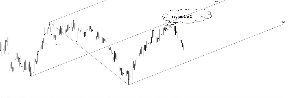 Stoploss activada na sequência de um movimento hagopiano (regra 4: When prices reverse before reaching the ML, leaving a “space”, they will move more in the opposite direction than when prices were rising toward the ML).