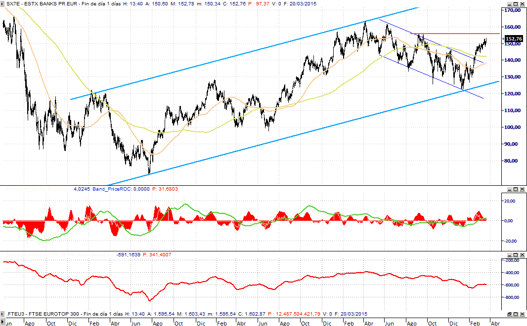 Bato só nesta tecla, é mais fácil ganhar (do lado longo e do lado da tendência) em ações ascendentes do que em ações descendentes, acreditando na inversão. Então quando há um breakout em indices importantes, na Banca da eurozona hoje (ver gráfico do stoxx banks), e quando a Grécia poderá ter um princípio de solução, tudo ajuda a uma subida generalizada.