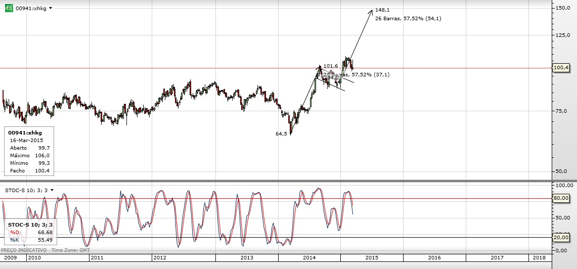 Dou por terminada a minha pequena participação com o boneco da China Mobil. Em menos de um ano valorizou quase 70%, parece estar agora a testar o breakout de uma bandeira.