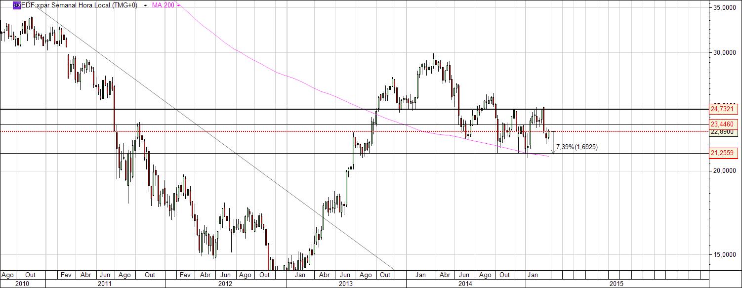 AntónioManuel Escreveu:Passei aqui pelo tópico e depois de ler senti curiosidade em ver o gráfico da EDF. Como tem um canal com uma boa amplitude onde anda a lateralizar, que é uma das situações que gosto de negociar deixo aqui a minha analise e gostava que o Rsacramento disse-se se concorda ou não, e se não qual é a sua visão.