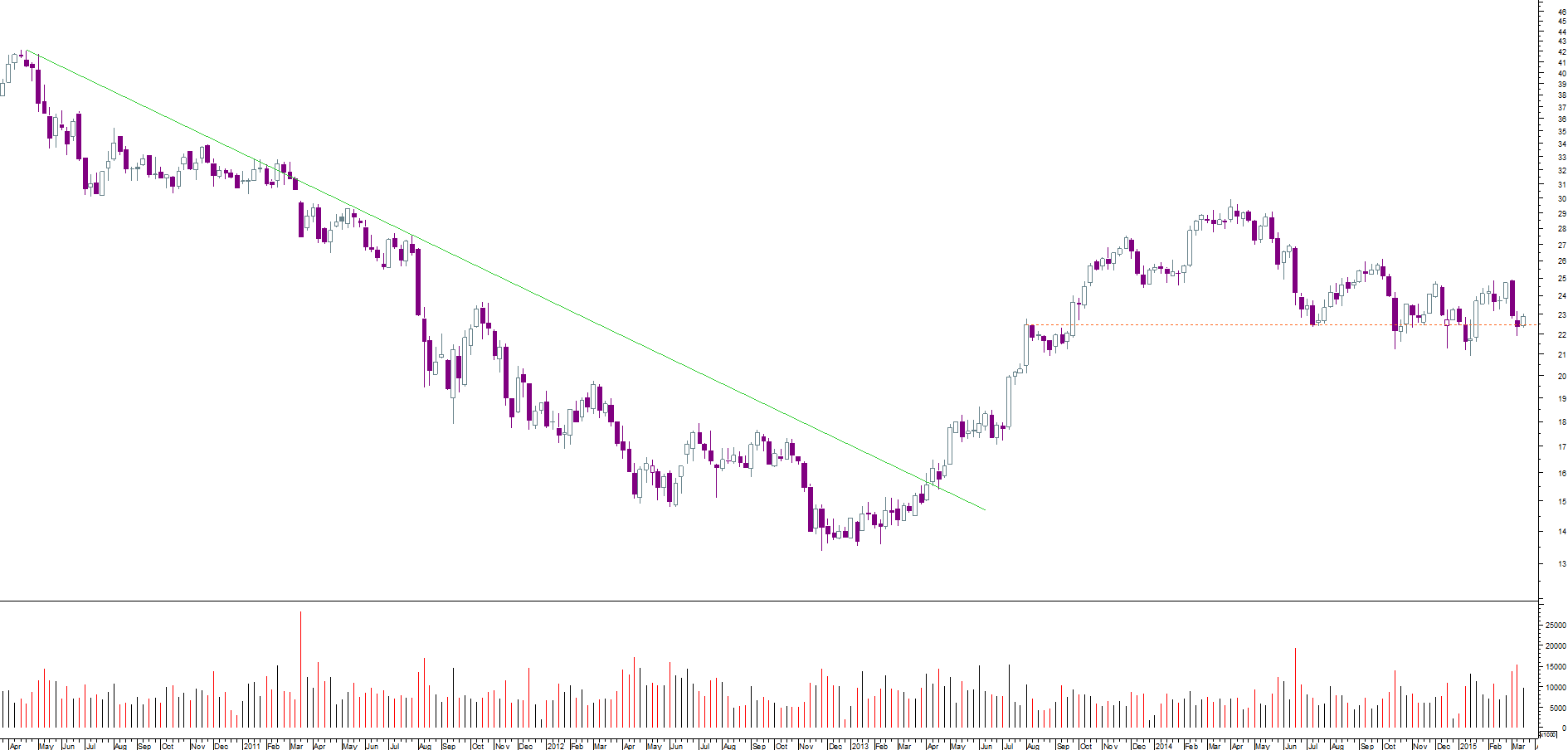 sem dúvida que desde outubro que oscila entre os 21.21 e os 24.77 sensivelmente, o que desagua na clássica situação 'do suporte à resistência'