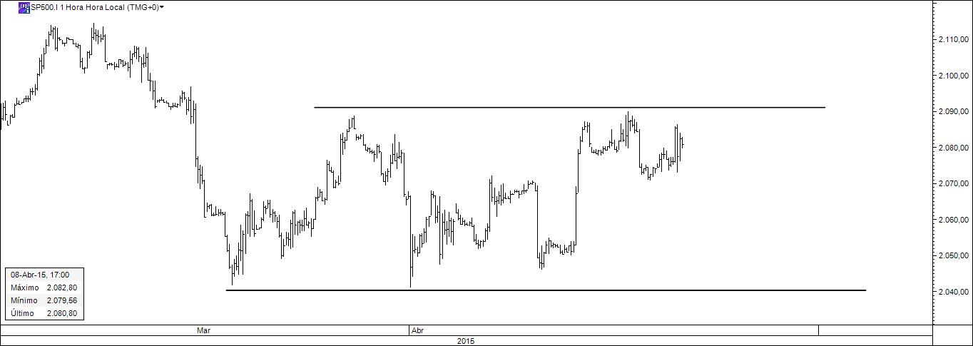 se eu apresentar o sp500 (1 h) usando as duas linhas do gráfico, como qualificarias o estado do mercado?