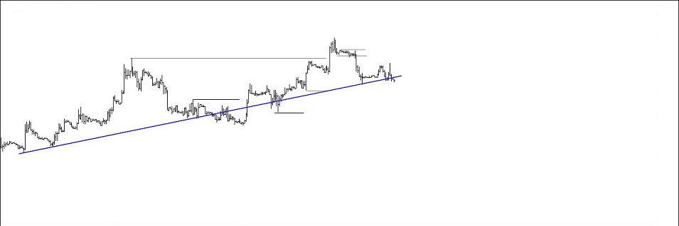 já que a tendência no gráfico de maior prazo é ascendente, o que te leva a crer que a zona de preço que identificas para a venda servirá de resistência ao preço? por outro lado já anteriormente a linha cedeu, mas o preço voltou a passá-la...