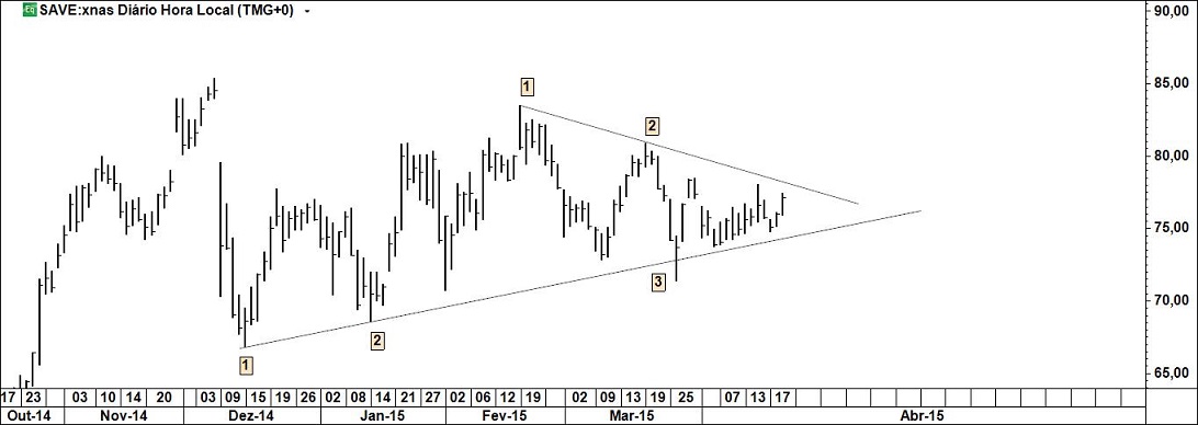 Em 16/3/2015 disse:À medida que o tempo avança o target vai melhorando ou piorando em relação ao cálculo inicial. No caso da has, uma vez que wl é descendente, o target vai piorando. A stop profit está colocada acima do último swing low relevante.