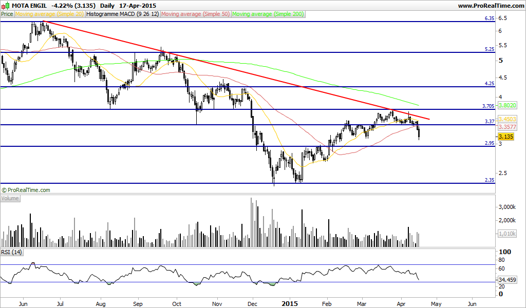 As acções da Mota-Engil descem 3,93 pct para 3,297 euros e