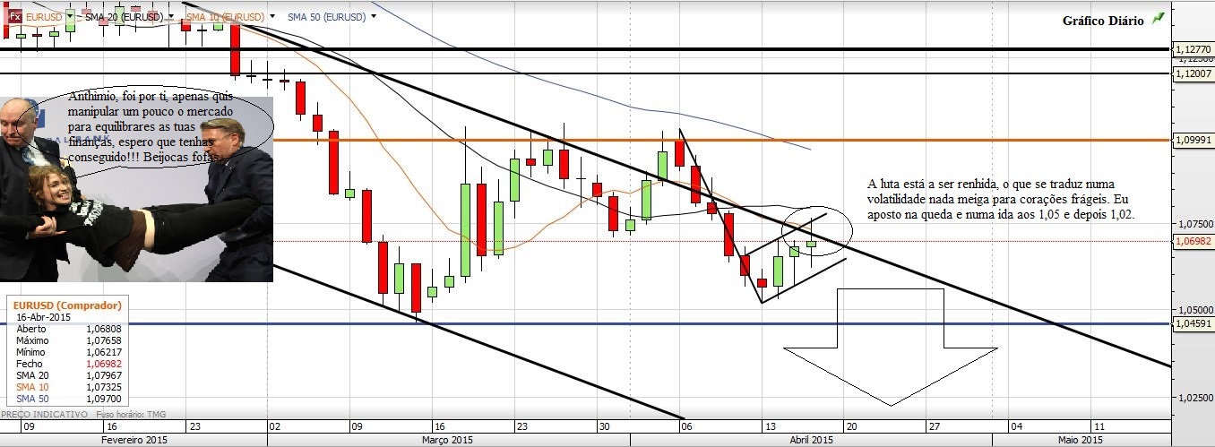 Agora é possível ir aos 1,10 e até um pouco mais acima. O que eu acho é que o EURUSD agora vai simular uma inversão de tendência para depois sim, descambar à Grande e atacar a paridade.