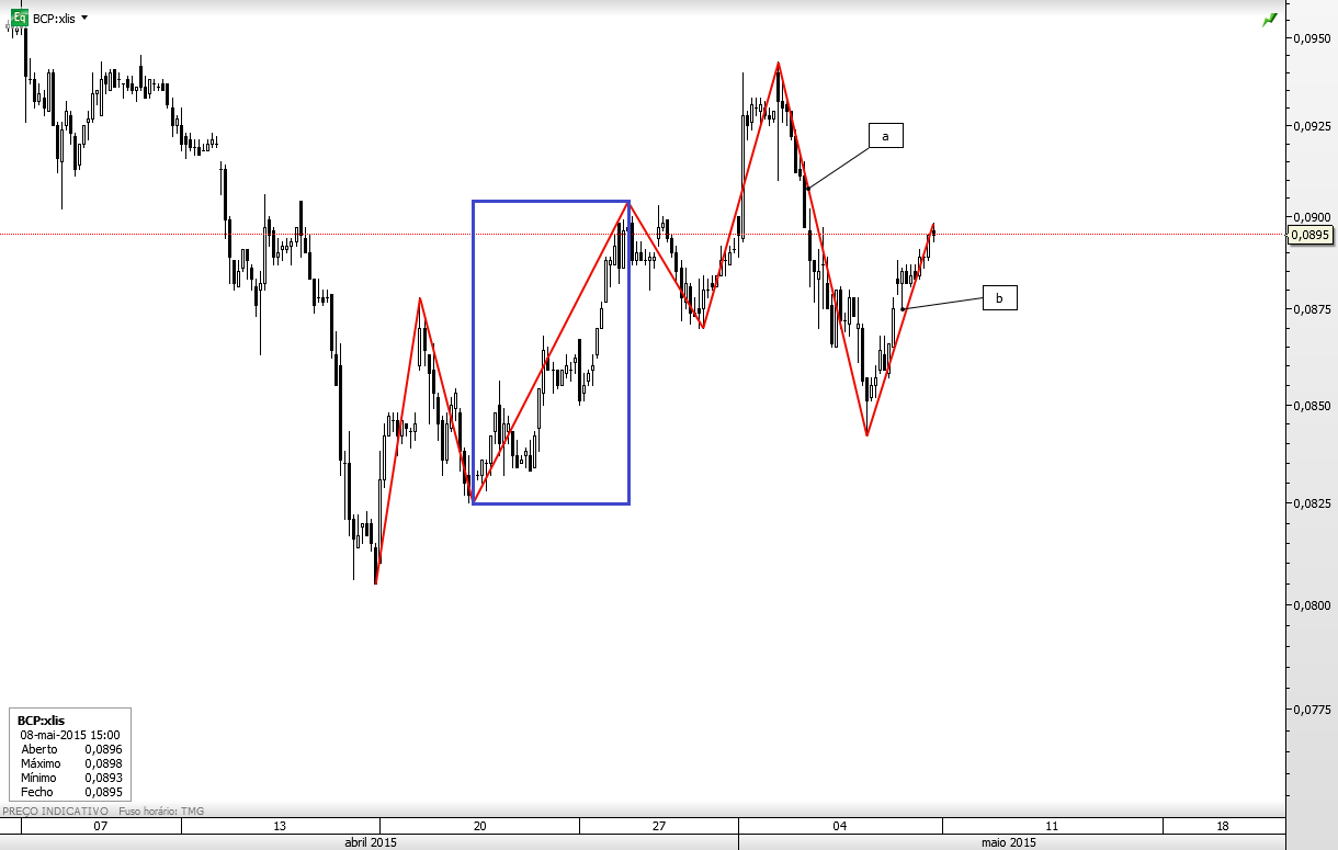Na realidade tudo estava a correr bem até tocar nos 0.094, valor este que podiam projectar o BCP.