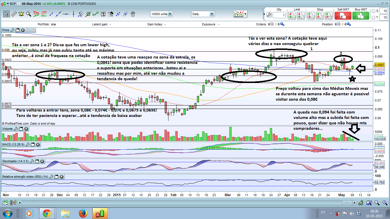 Analiso o BCP para um amigo meu, que aconselhei a vender a 0,093€ e ele fez e tá contente. Penso que está recuperação foi mais técnica apos cair 10%. Fiz-lhe um boneco e partilho com voces.