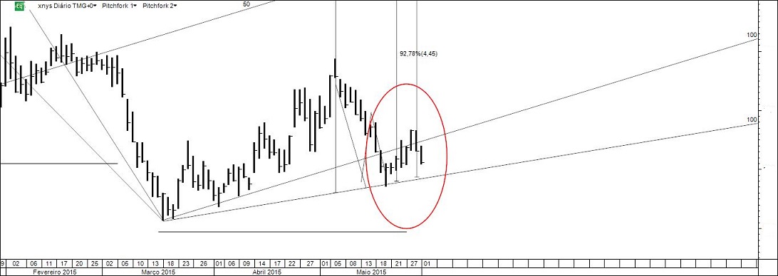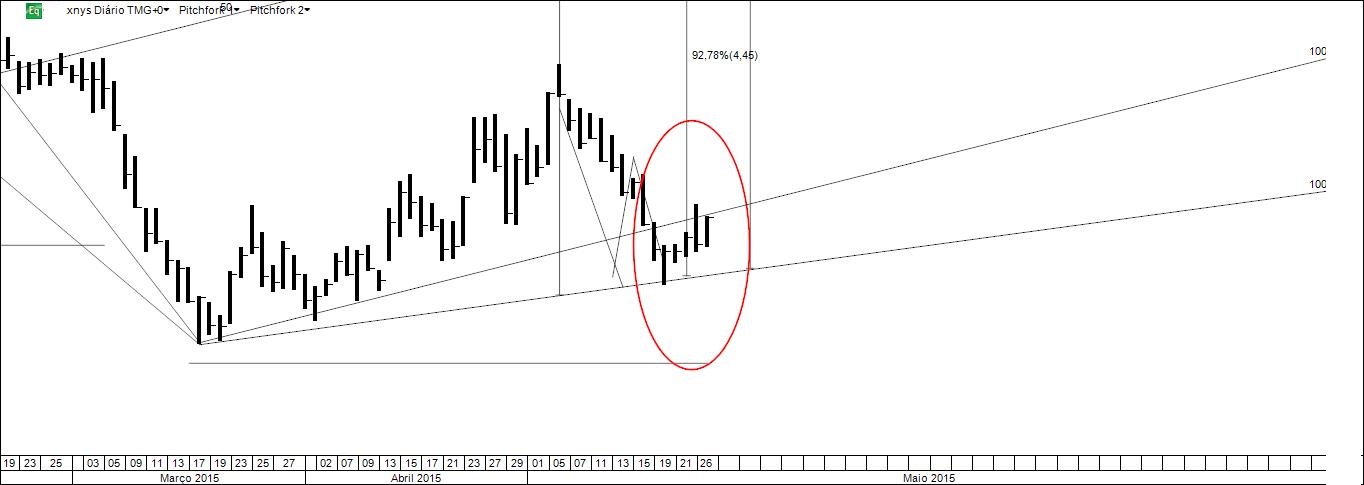 Gráfico 2: gráfico da amt mostrando a chegada do preço à zona seleccionada no dia 3/11/2014. Quem tiver o necessário perfil poderá comprar.