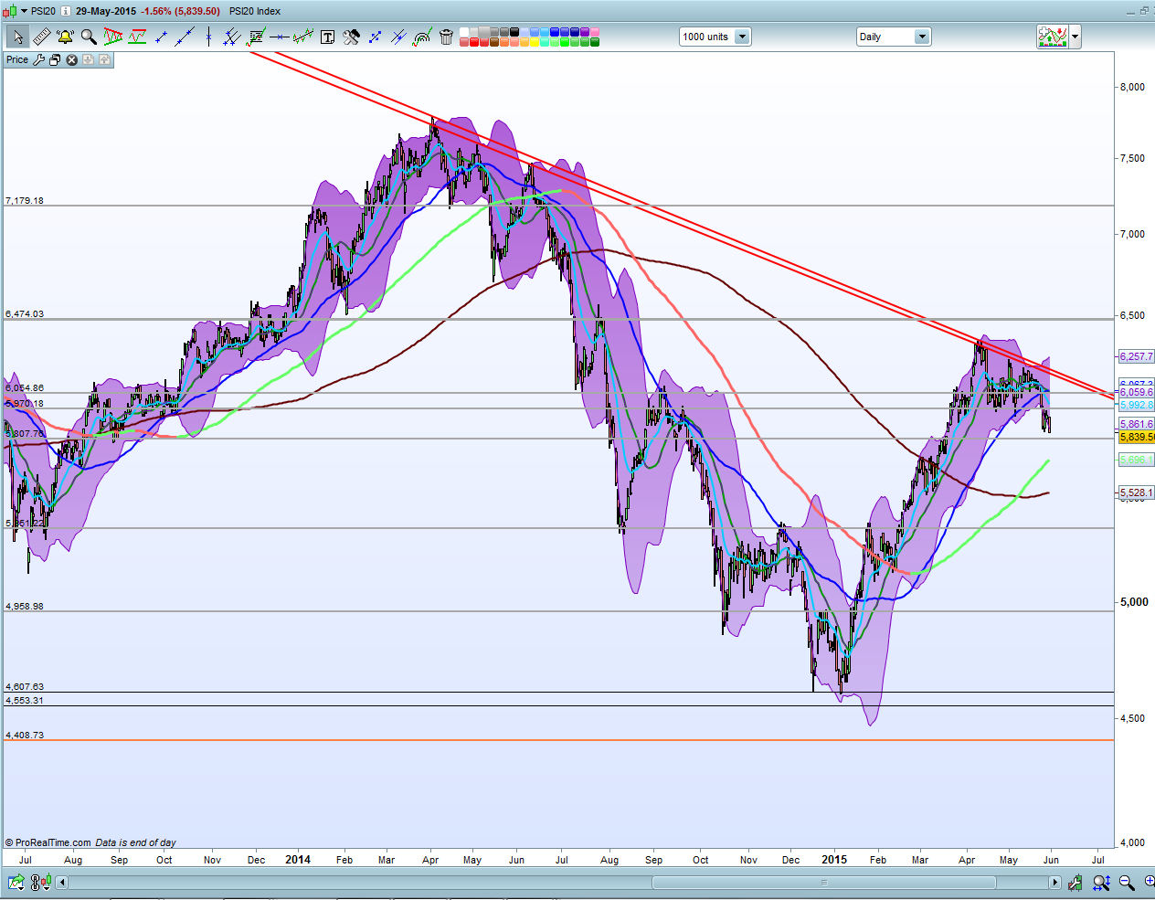 Estou curioso como o psi se irá comportar perto do gap 5700pts,teremos várias acoes perto dos suportes importantes que, caso quebrados entrariam em Bear market em muitas delas,o que arrastaram o psi para forte descendência continuação de Bear market.Tudo não passaria de um movimento correctivo do último Bear,temos de ter em conta que perdemos o comboio com o caso BES face a outros mercados.Para ajudar os states têm revelado algum cansaso mas sem para já revelar qq sinal de inversão,apenas correçoes saudáveis assim como o psi20.